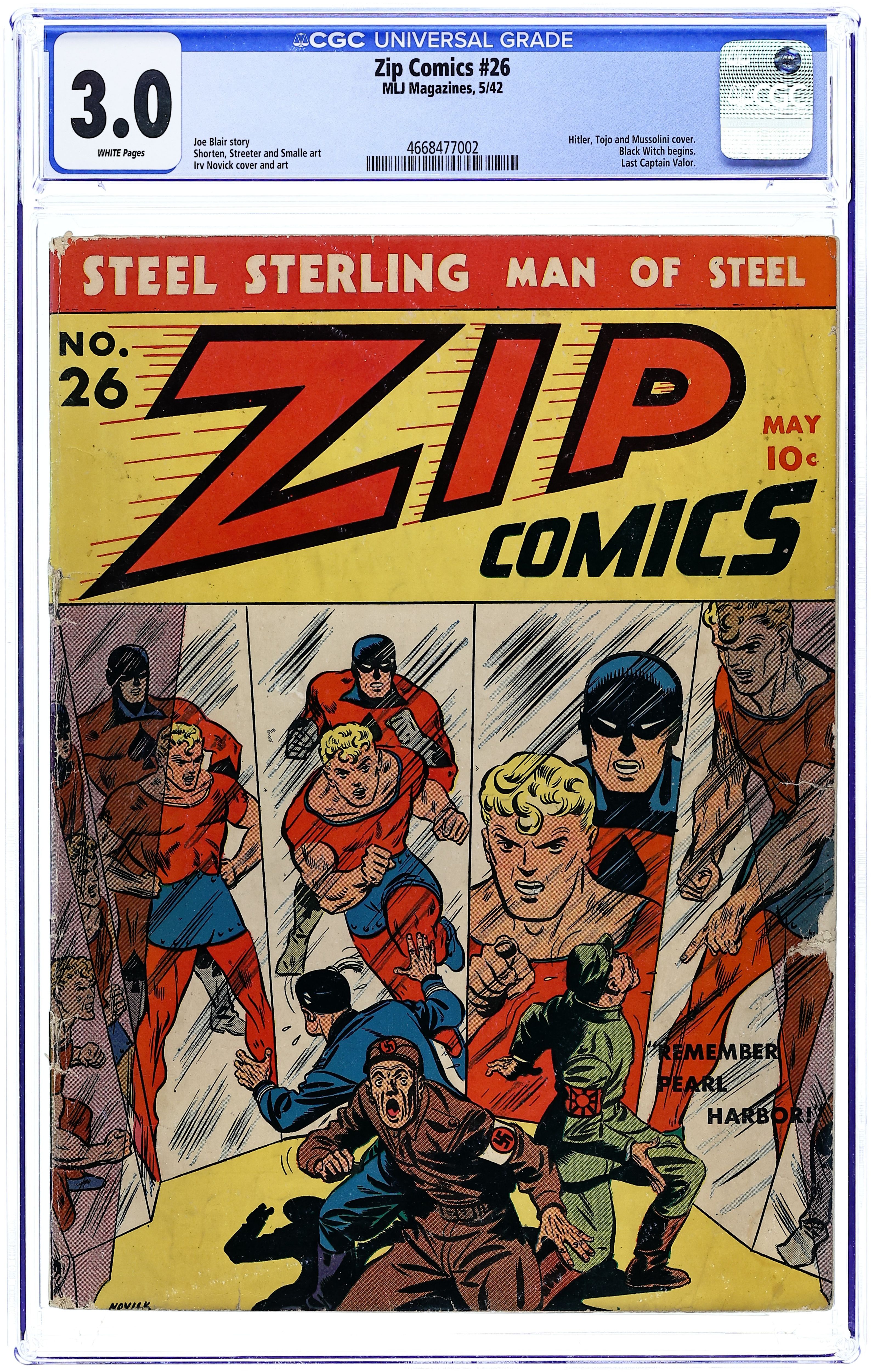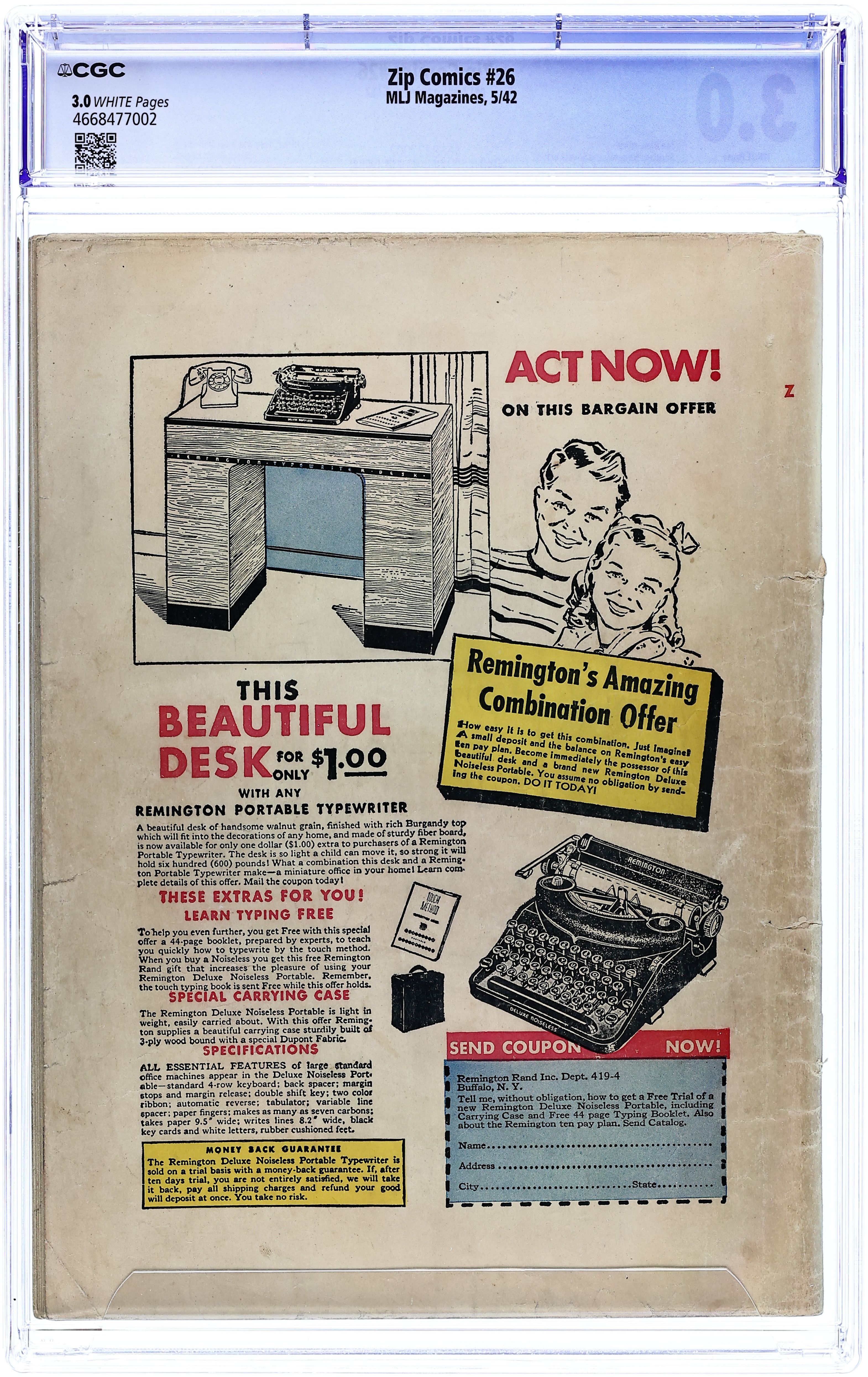 Published May 1942 by MLJ Magazines.$150.00- One small piece missing from last page, slightly interrupts art and story. Another small piece also detached from last page, but still present. Centerfold detached.
