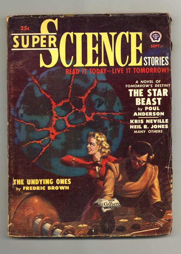 Volume 7, Issue 2 - September, 1950 Volume 7, Issue 2. Cover by Van Dongen. Science Fiction Stories: "The Star Beast" by Poul Anderson, "Half-Life" bu Alfred Coppel, "Ultimate Quest" by John Holbrook, "The First" by Kris Neville, "The Undying Ones" by Fredric Brown, "The Mind Masters [Professor Jameson]" by Neil R. Jones, "Beyond Space and Time" by Joel Townsley Rogers, and "Final Enemy" by L. Ron Hubbard. 7-in. x 9 1/2-in., 130 pages, black and white. Cover price $0.25.