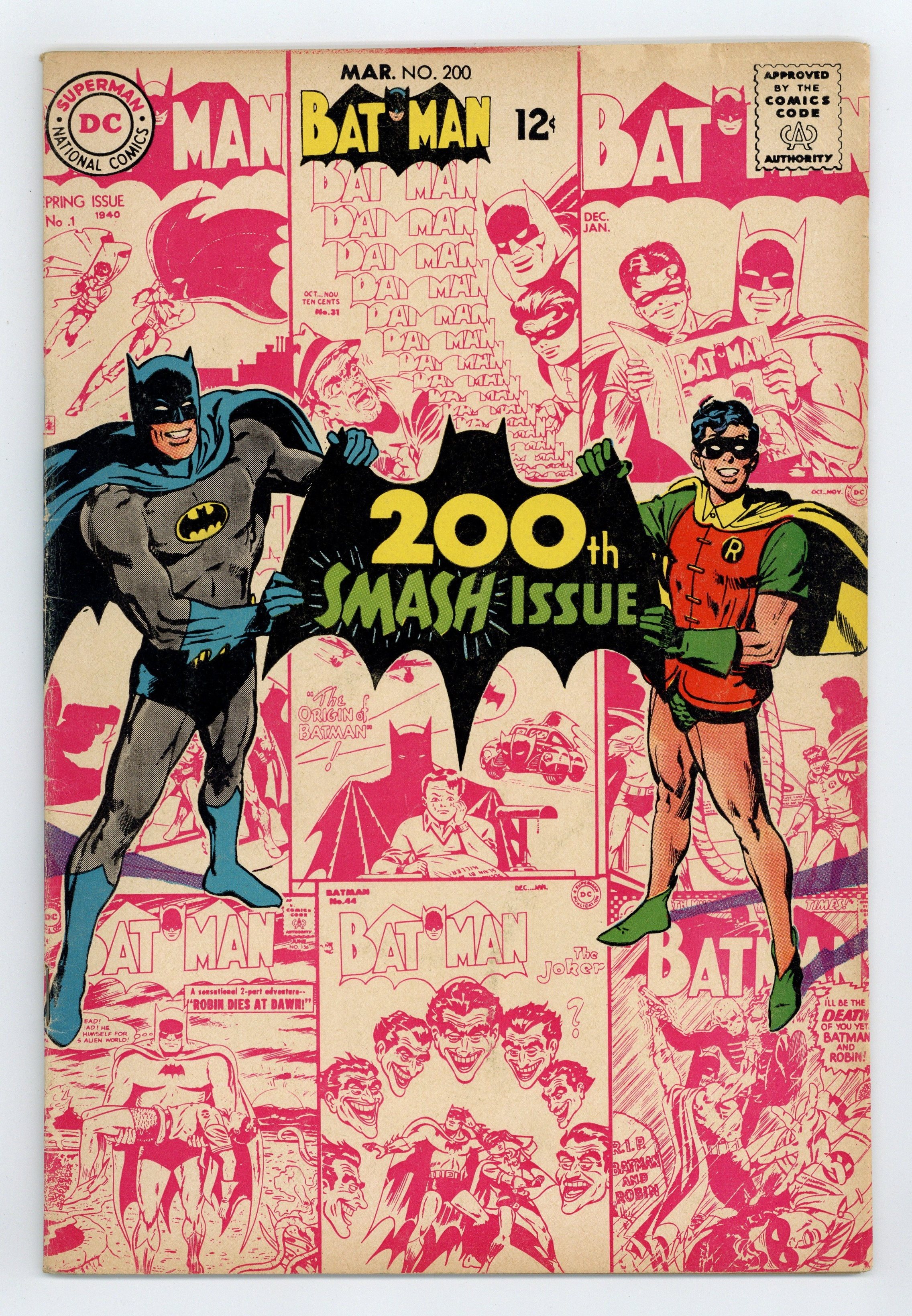 Cover art by Neal Adams (first work on this title) and various (background). "The Man Who Radiated Fear!" starring Batman and Robin (with Joker and Penguin cameos), script by Mike Friedrich, pencils by Chic Stone (ghosting for Bob Kane), inks by Joe Giella.; When the Scarecrow perfects a fear-radiated pill and uses it on the Caped Crusaders, the duo are unable to continue their war on crime until Alfred enters the picture; Then the Caped Crusaders head out and capture several of their foes, each one having a clue on their persons which lead them to the Scarecrow. "The Bat-Man," script by Bill Finger, art by Bob Kane; reprint of first page of first Batman story. The Batman says: public service announcement, script by Whitney Ellsworth, art by Jack Burnley. One-page dialogue between comic writer Mike Friedrich and fan Biljo White. Statement of ownership--average print run 1,198,000; average paid circulation 805,700. 36 pgs., full color. Cover price $0.12.