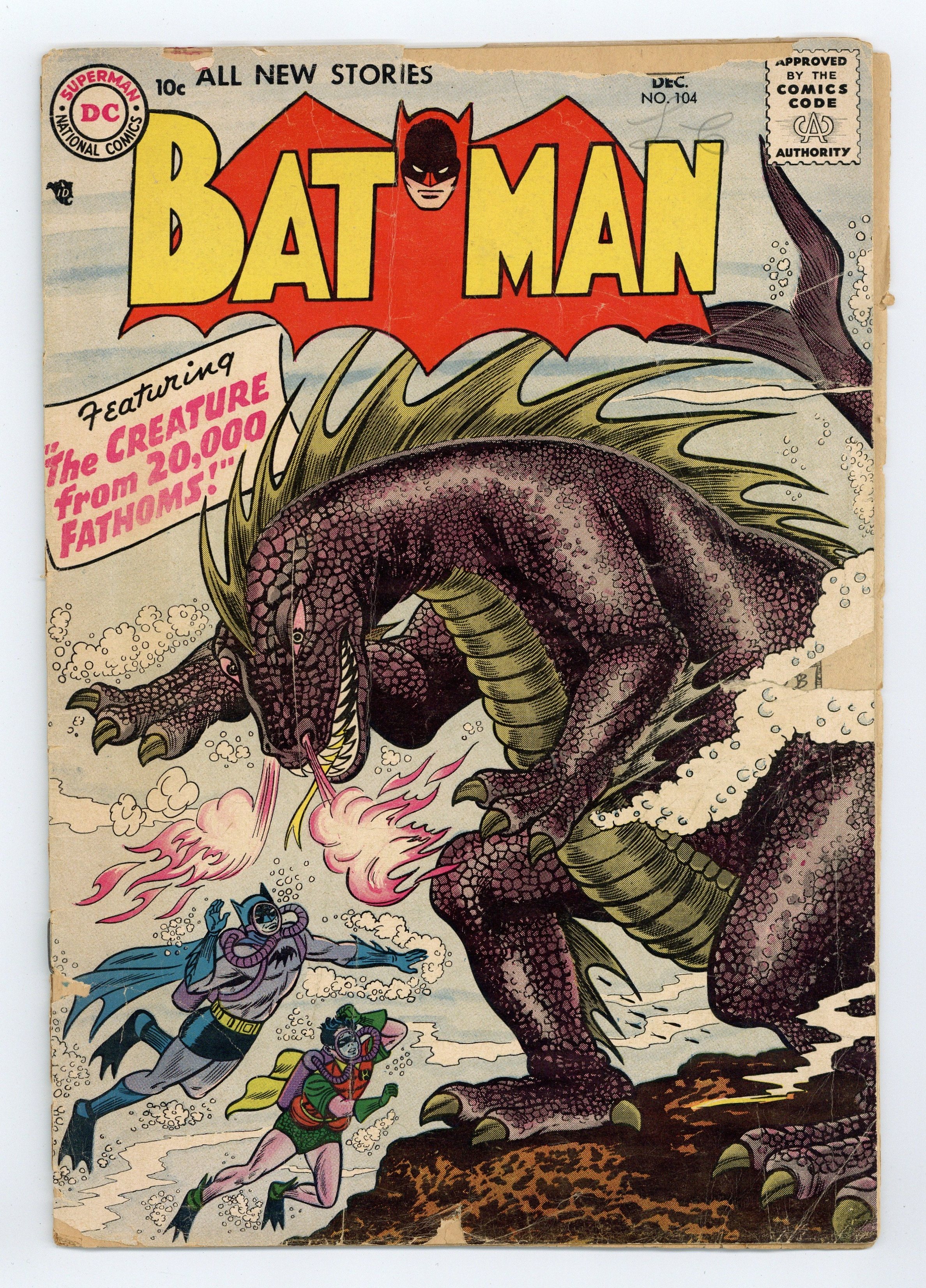 Cover by Sheldon Moldoff. "The Man Who Knew Batman's Secret," script by Edmond Hamilton, pencils by Dick Sprang, inks by Charles Paris; Batman is seeking to capture John Varden, but the wily criminal eludes him. Meanwhile, an out-of-town detective named Crane enters the picture, accidently discovering Batman's true identity, a fact well publicized by the media. Half-page Casey the Cop story by Henry Boltinoff. Gifts to the United Nations! public service announcement, art by Ruben Moreira. "Robin's 50 Batman Partners," script by Bill Finger, pencils by Dick Sprang, inks by Charles Paris; Batman injures his foot, so Robin must fill in for the Caped Crusader at the Batman Exposition, where he is being honored; Unfortunately, the Boy Wonder is attacked there by a mob who seek the diamonds the boy is carrying. 2/3-page Casey the Cop story by Henry Boltinoff. Invisible Detectives article by Jack Miller. "The Creature from 20,000 Fathoms," script by Bill Finger, pencils by Sheldon Moldoff, inks by Charles Paris; A new underwater species is discovered, but a diver seeks to sabotage efforts to study it, so Batman must step in and save the creature and its egg. 36 Pages, Full Color. Cover price $0.10.