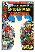 $14.00"Sword of the She-Devil" Guest-starring Spider-Man and Red Sonja. Plot and Script by Chris Claremont. Plot and Pencils by John Byrne. Inks by Terry Austin. Cover by John Byrne and Terry Austin. An emergency situation is developing at the Metropolitan Museum of Art! The Daily Bugle dispatches Peter Parker and a reporter to the site, but someone else sneaks along...Mary Jane Watson! The web-slinger quickly enters the museum and is attacked by grotesque monsters! Mary Jane rushes inside to help the struggling wall-crawler, but what can she do? How about grab the ancient sword of Red Sonja! And in a dazzling transformation...Mary Jane Watson becomes Red Sonja! Now the Amazing Spider-Man and the She-Devil with a Sword team up against the evil sorcerer Kulan Gath! Will New York City survive...and Ms. Watson too? An excellent story! Cameo appearance by Clark Kent on page 3. (Notes: This is a key appearance of Mary Jane Watson during the time period (between 1979 and 1983) when she rarely appeared in any of the Spider-Man titles. Kulan Gath appears next in Uncanny X-men 190. This is the final issue of the Claremont-Byrne run on the Marvel Team-Up title. This issue was reprinted in Marvel Tales 208.) 36 pages. Cover price $0.35.