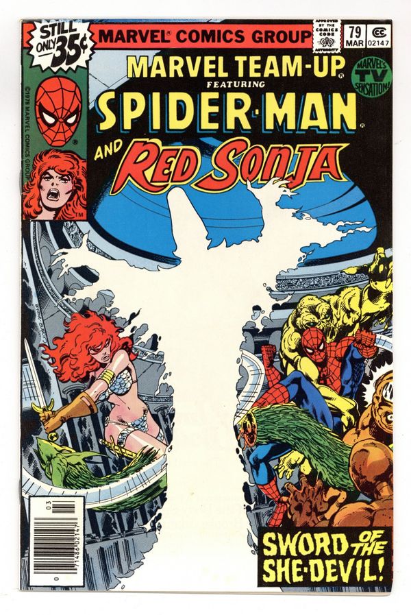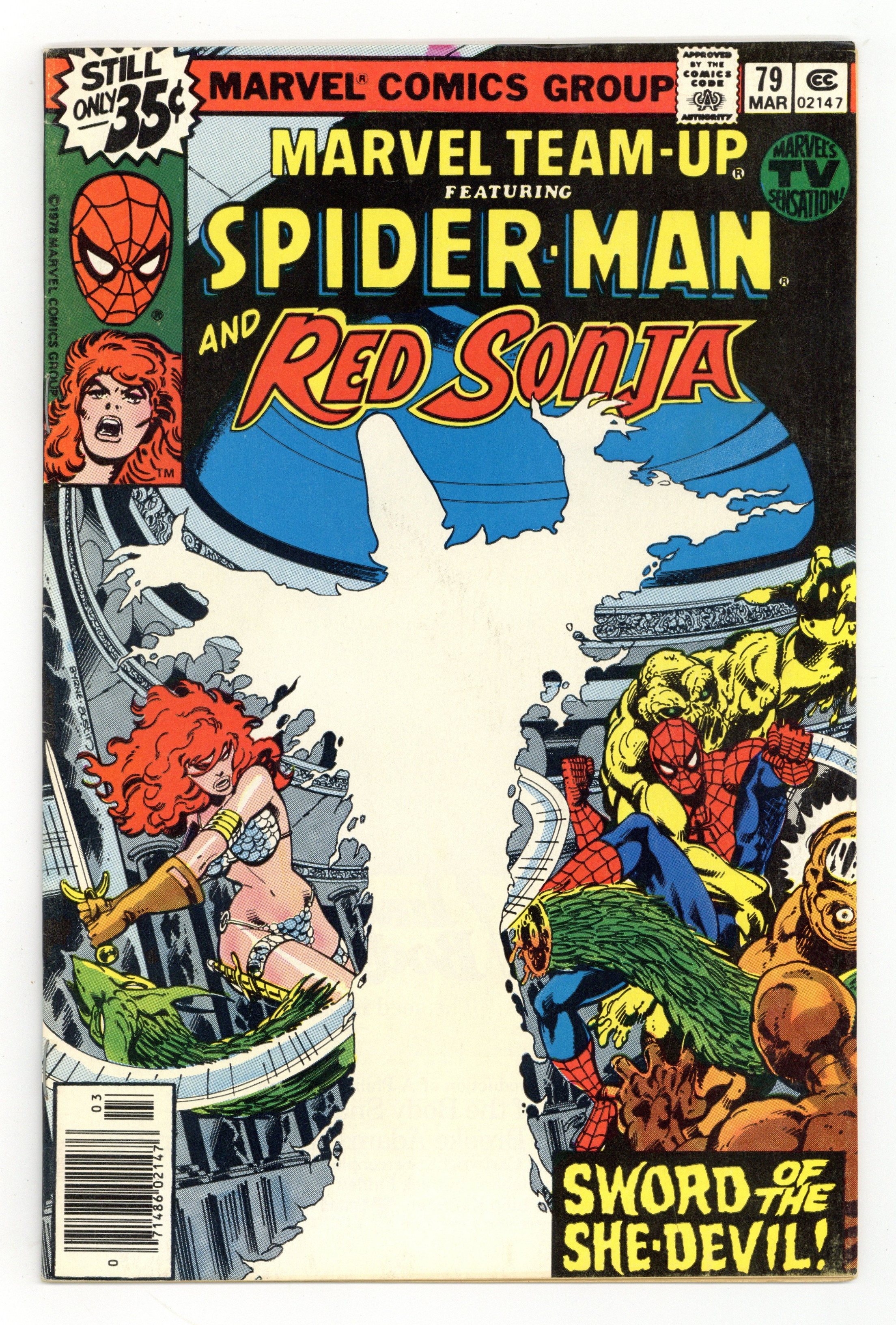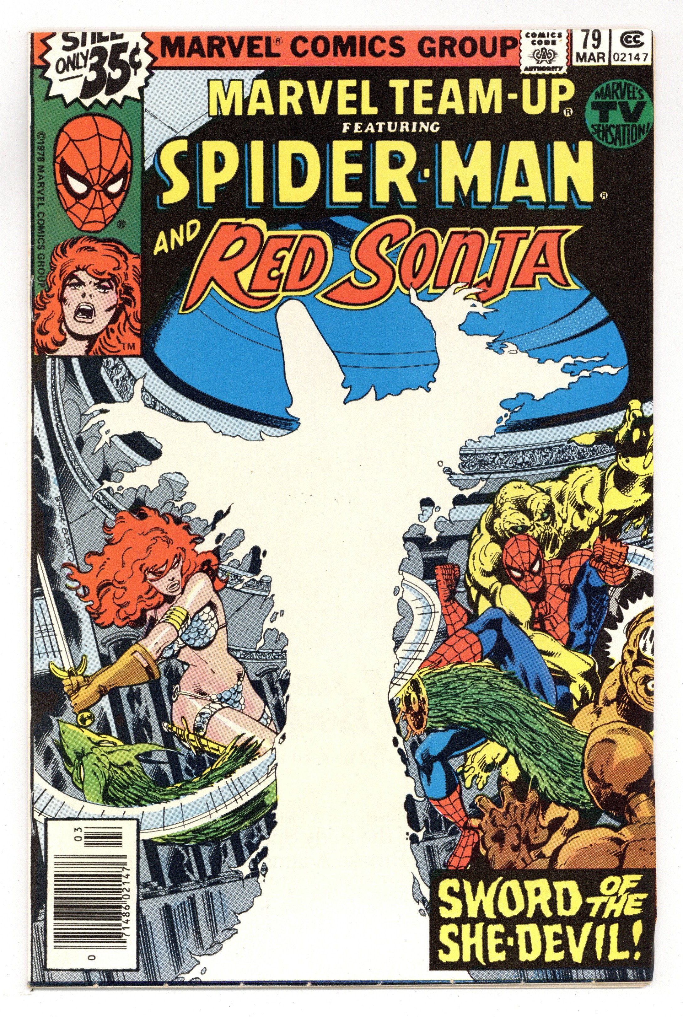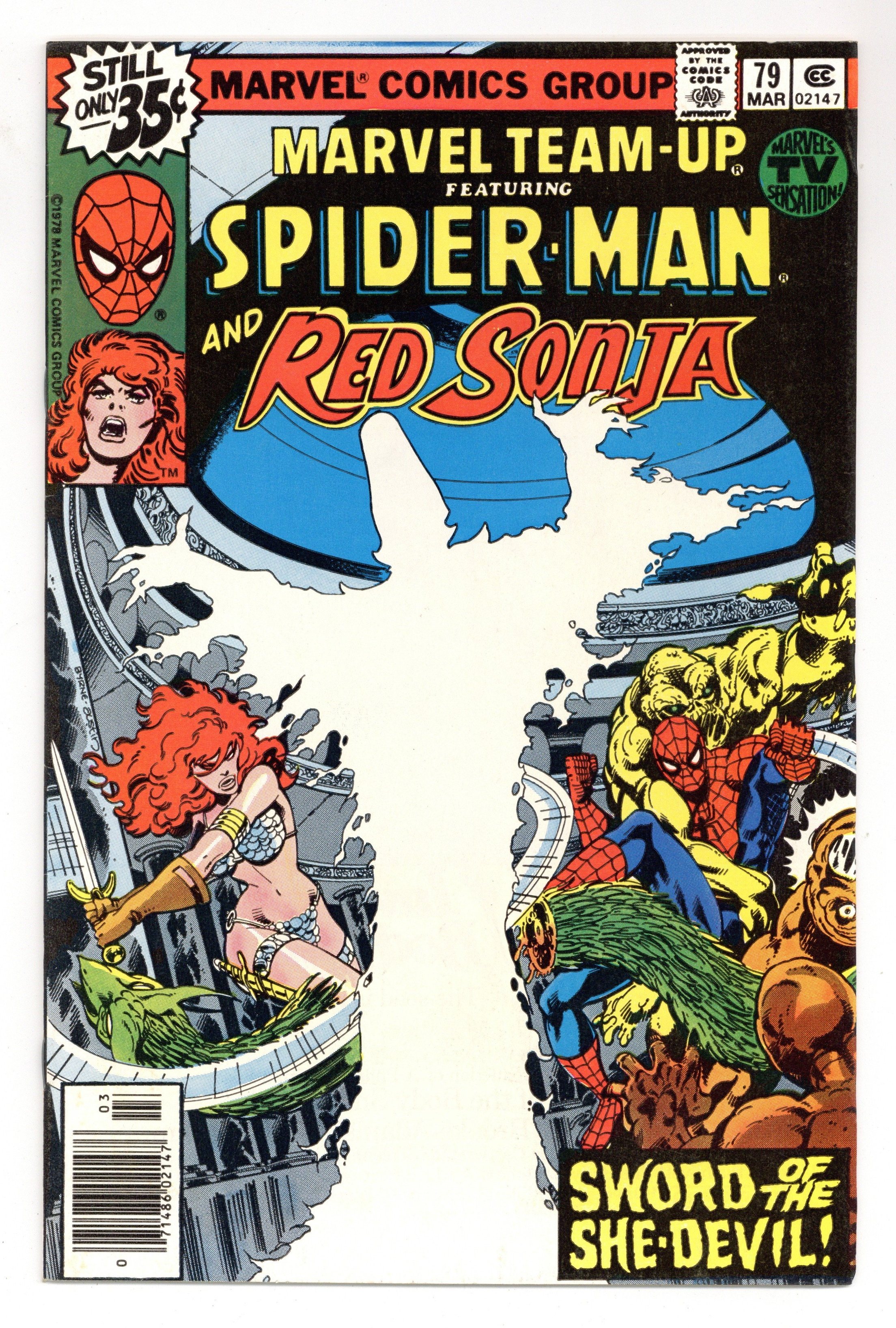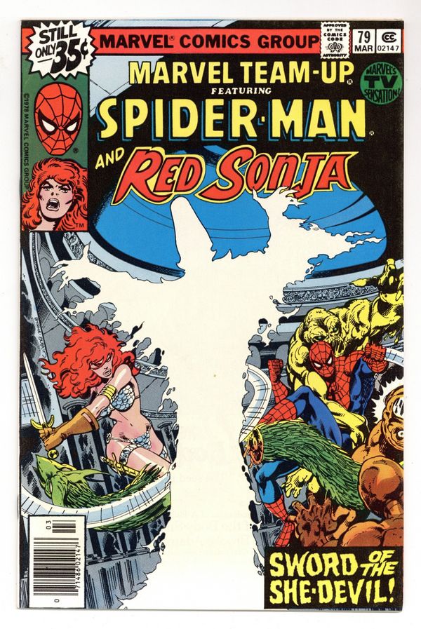 Ends Mar 30 8:57 PM CST Bid History 4 bids Current Bid $24 Your Secret Max Bid If you'd like to bid, please log in or register. "Sword of the She-Devil" Guest-starring Spider-Man and Red Sonja. Plot and Script by Chris Claremont. Plot and Pencils by John Byrne. Inks by Terry Austin. Cover by John Byrne and Terry Austin. An emergency situation is developing at the Metropolitan Museum of Art! The Daily Bugle dispatches Peter Parker and a reporter to the site, but someone else sneaks along...Mary Jane Watson! The web-slinger quickly enters the museum and is attacked by grotesque monsters! Mary Jane rushes inside to help the struggling wall-crawler, but what can she do? How about grab the ancient sword of Red Sonja! And in a dazzling transformation...Mary Jane Watson becomes Red Sonja! Now the Amazing Spider-Man and the She-Devil with a Sword team up against the evil sorcerer Kulan Gath! Will New York City survive...and Ms. Watson too? An excellent story! Cameo appearance by Clark Kent on page 3. (Notes: This is a key appearance of Mary Jane Watson during the time period (between 1979 and 1983) when she rarely appeared in any of the Spider-Man titles. Kulan Gath appears next in Uncanny X-men 190. This is the final issue of the Claremont-Byrne run on the Marvel Team-Up title. This issue was reprinted in Marvel Tales 208.) 36 pages. Cover price $0.35.