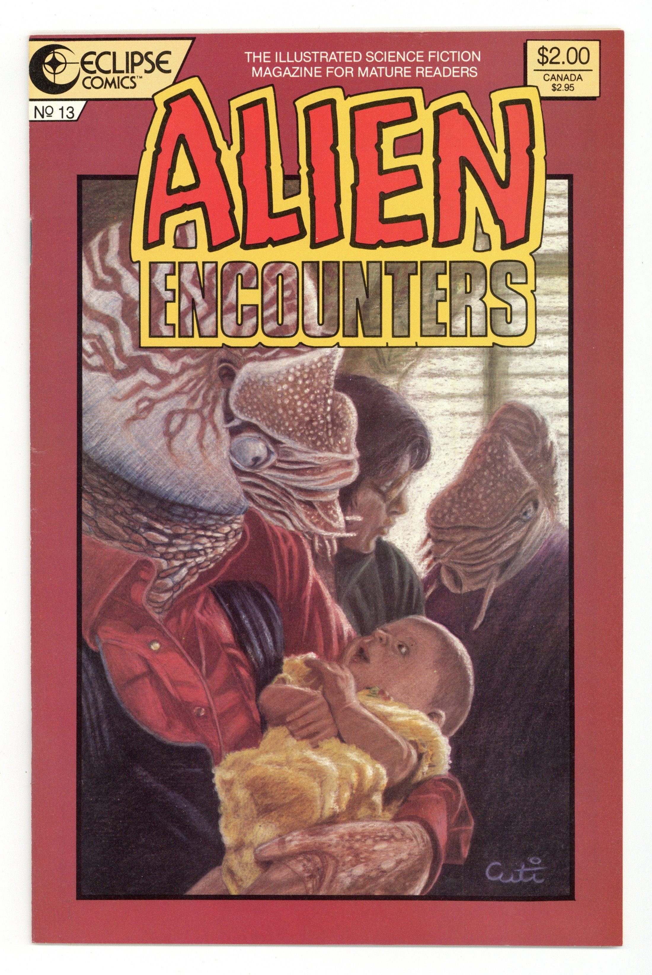 $13.50Cover by Nicola Cuti. Written by Chuck Dixon, Ruby and Douglas Wheeler. Art by Peter Ledger, Graham Nolan, Hilary Barta and Doug Medved. The illustrated science fiction magazine for mature readers. In this issue: "The Light at the End" by Chuck Dixon and Peter Ledger; "Page One" by Ruby and Graham Nolan; "The Midget and the Eyeball" by Douglas Wheeler and Hilary Barta; and "The Ideal Solution!" by Ruby and Doug Medved. 32 pages, full color. Mature Readers. Cover price $2.00.