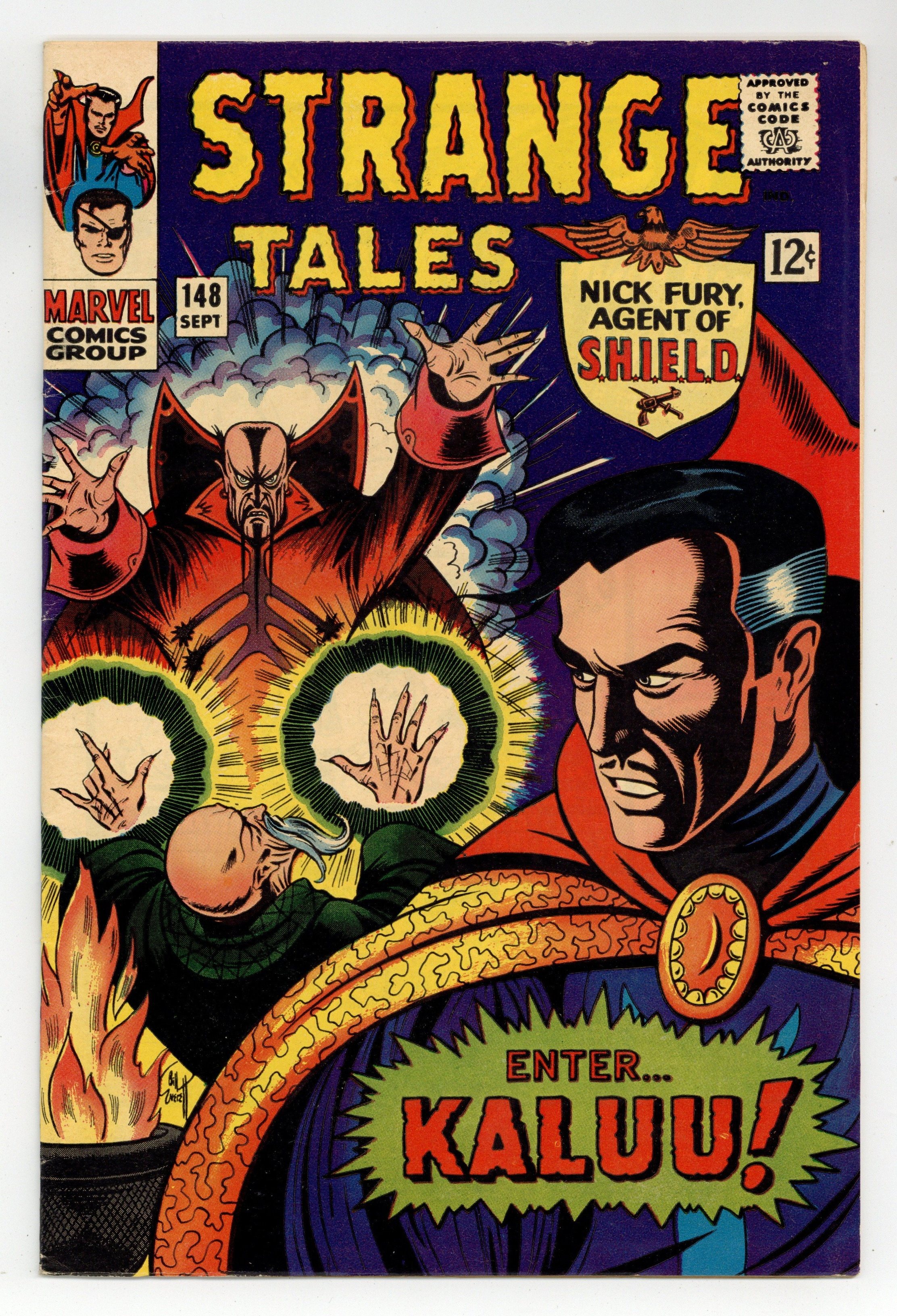 Tags: Marvel Legacy Numbering: Doctor Strange (part 148)$5.80Cover art by Bill Everett. "Death Before Dishonor!", script by Jack Kirby, pencils by Jack Kirby (layouts) and Don Heck, inks by Don Heck; Dugan is shattered when he thinks Fury is killed in a fire-bombing attack by A.I.M., only to discover it was actually a Life Model Decoy; Fury realizes their movements are under video-surveillance by the enemy. Count Royale and his A.I.M. cohorts are amazed at how sophisticated the L.M.D.s are and plan to steal one. "The Origin of the Ancient One!", script by Denny O'Neil and Bill Everett (co-plot), art by Bill Everett; The Ancient One tells Strange of his early life in Kamar-Taj, a hidden land in the Himalayas; He & Kaluu were born there, but while Strange's mentor sought to use magic for good, Kaluu dreamed of power; Kaluu mentally gained control of the people, imprisoned his once-friend, and enslaved neighboring lands. Merry Marvel Marching Society info and coupon. 36 pgs., full color. Cover price $0.12.