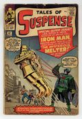 Ends Mar 30 9:40 PM CST Bid History 9 bids Current Bid $33 Your Secret Max Bid If you'd like to bid, please log in or register. Cover pencils by Jack Kirby, inks by George Roussos. "Iron Man Battles the Melter!", script by Stan Lee, pencils by Steve Ditko, inks by Don Heck; A former competitor of Tony Stark becomes the Melter and sabotages one of his plants. Iron Man tries to defend it but must flee before the Melter; He defeats him by constructing an aluminum suit that he cannot melt. "The Green Man" text story. "Shock!", script by Stan Lee (plot) and Larry Lieber (script), pencils by Larry Lieber, inks by George Roussos (as G. Bell); A radar operator turns off Earth's defenses when alien raiders offer him the most beautiful woman in the universe. 36 pages, full color. Cover price $0.12.