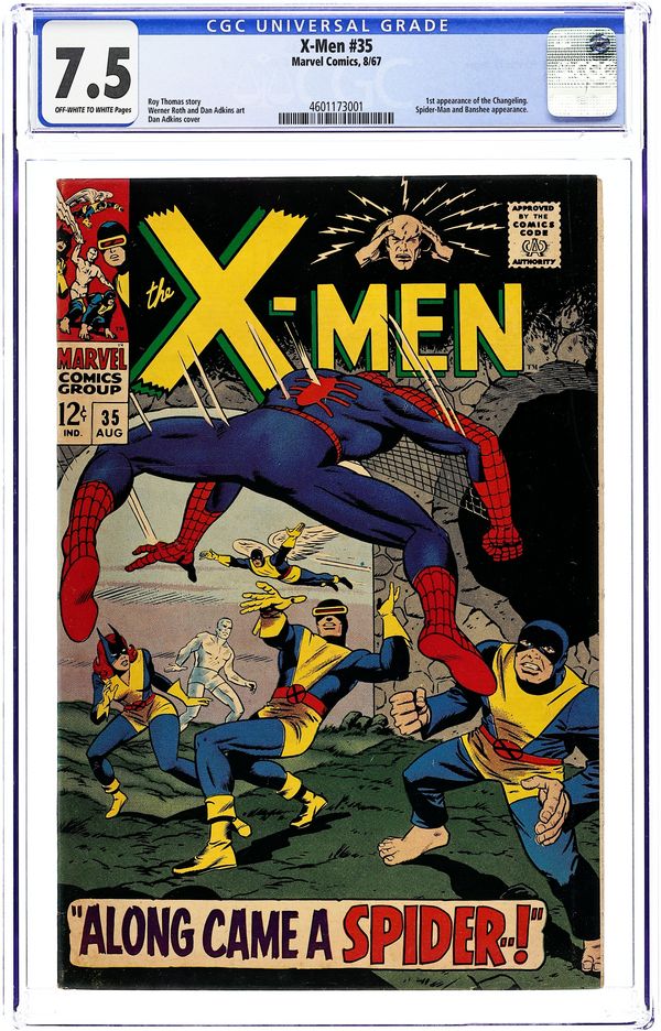 Tags: X-Men$180.00Cover art by Dan Adkins. Along Came a Spider..., script by Roy Thomas, pencils by Werner Roth, inks by Dan Adkins; Banshee calls to the X-Men for help against a mysterious spider creature, and when the young mutants run across Spider-Man, they mistake him for their foe and a battle ensues. House ad for issue #2 of Not Brand Echh. Letter from future comics professional Mark Evanier, whose entry is in the form of a poem. Ad for The Merry Marvel Marching Society. 36 pgs. $0.12. Cover price $0.12.