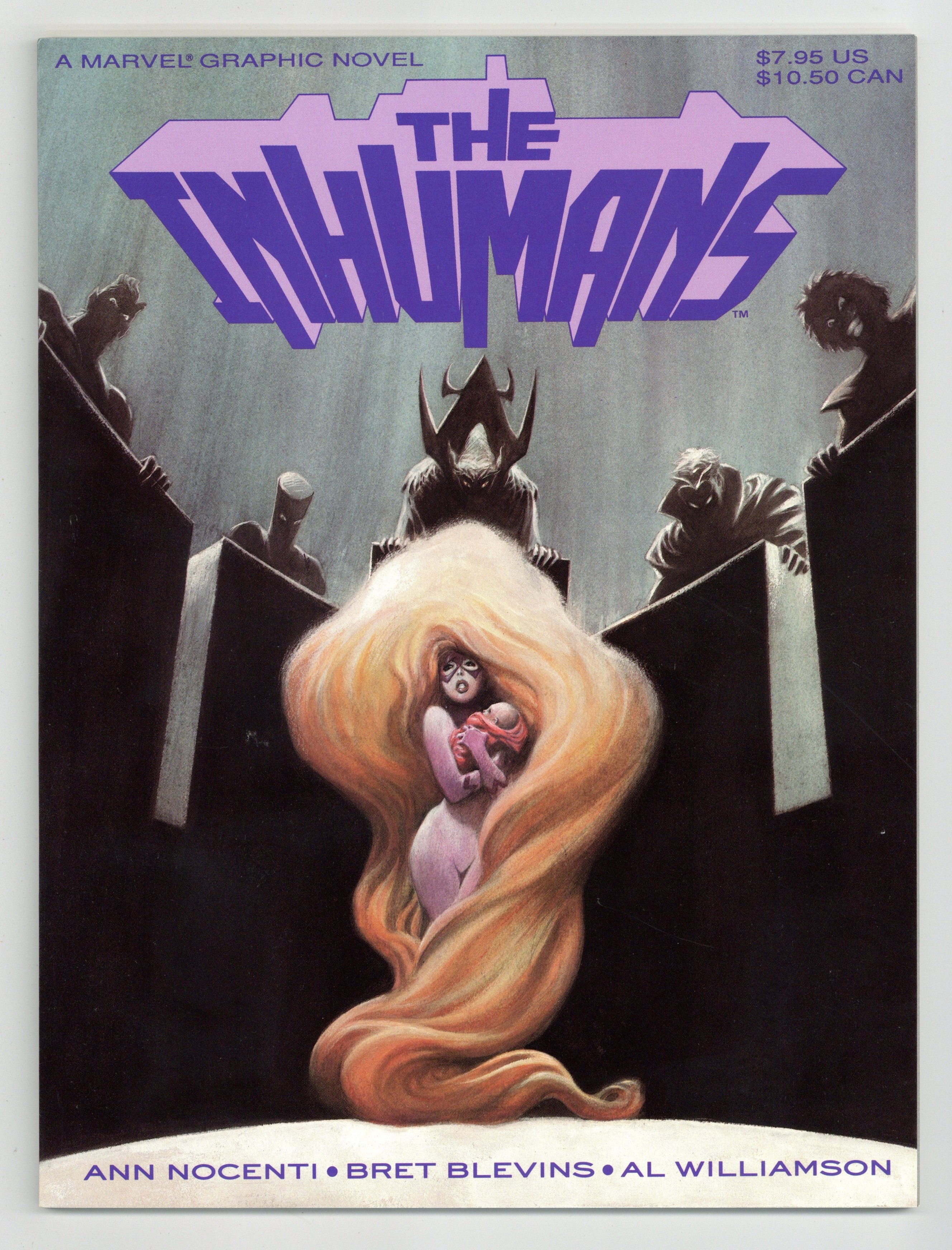 Tags: Marvel Graphic Novel Series (1982-1992) (part nn)$24.001st printing. Written by Ann Nocenti. Art by Bret Blevins and Al Williamson. The Royal Family is expecting an heir. But what tragic sacrifice will Black Bolt and Medusa have to make in order to save the life of their unborn child. And, what does the Black Bolt's sinister brother, Maximus, have planned for the child? Softcover, 8-in. x 11-in., 64 pages, full color. Cover price $7.95.
