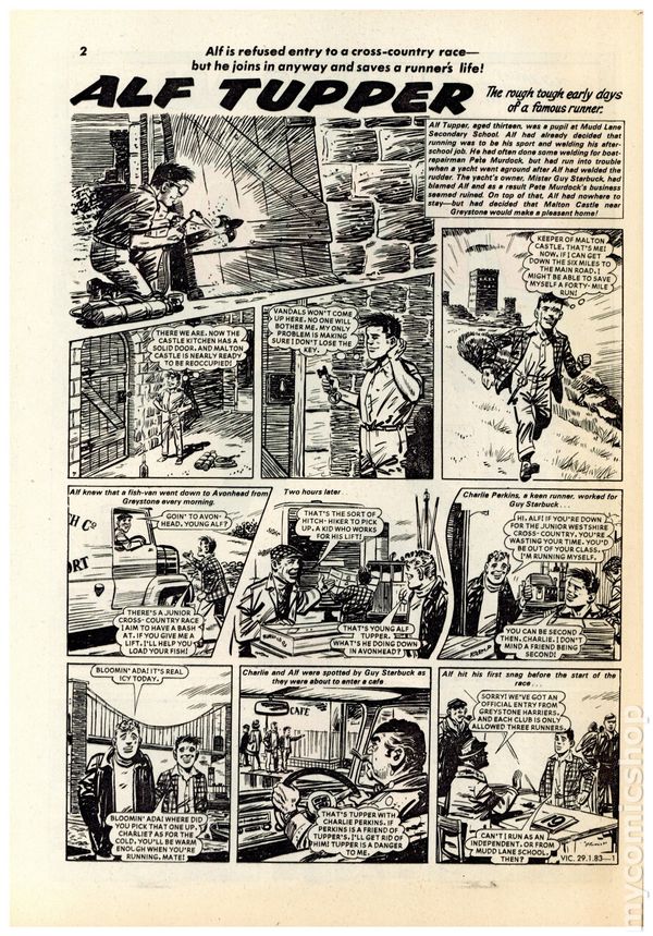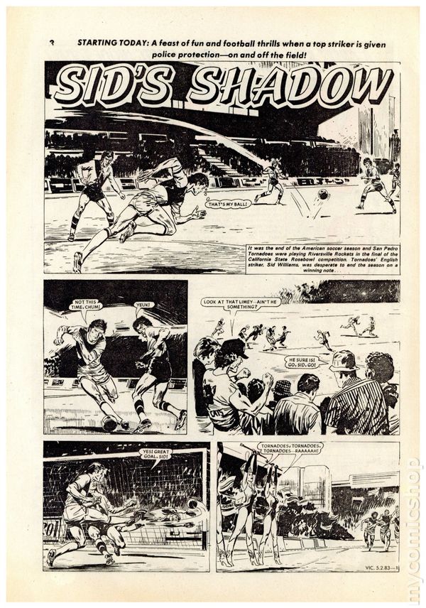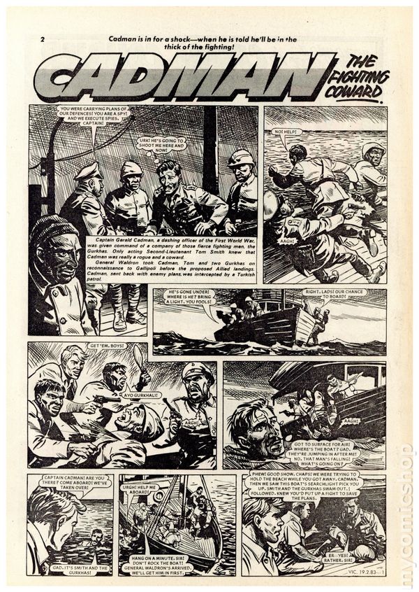 UK series. February 12th, 1983. Stories include Victor, Sid's Shadow, Canal Courier, Hijack, Cadman The Fighting Coward, Mr. Samson's Secret, The Coonskin Grenadier, The Striker From Karoma, Cap'n Hand and his Mutinous Band, and To The Rescue. 8 1/4" x 11 7/8", 32 pages, B&W, 14p cover price.