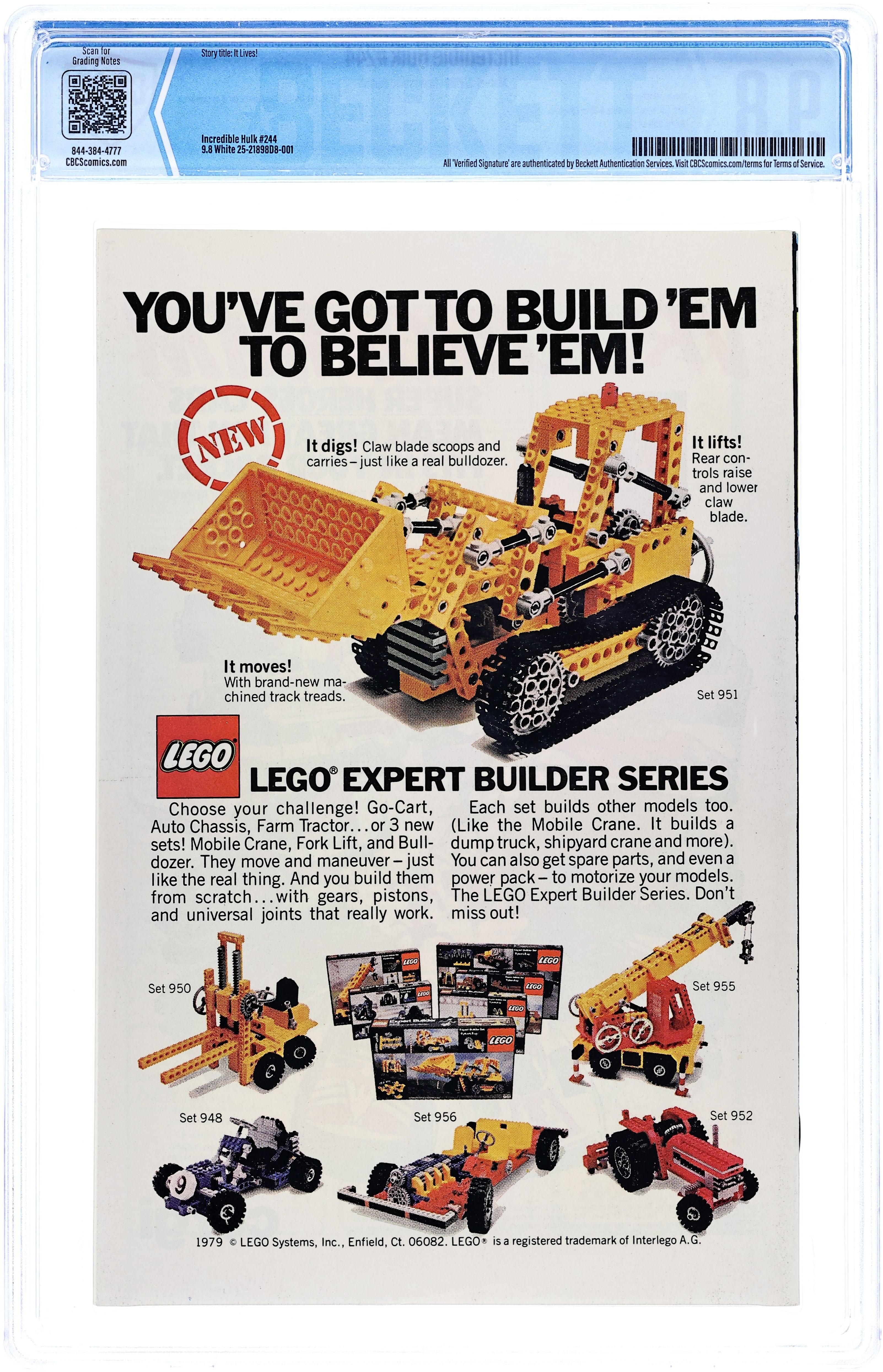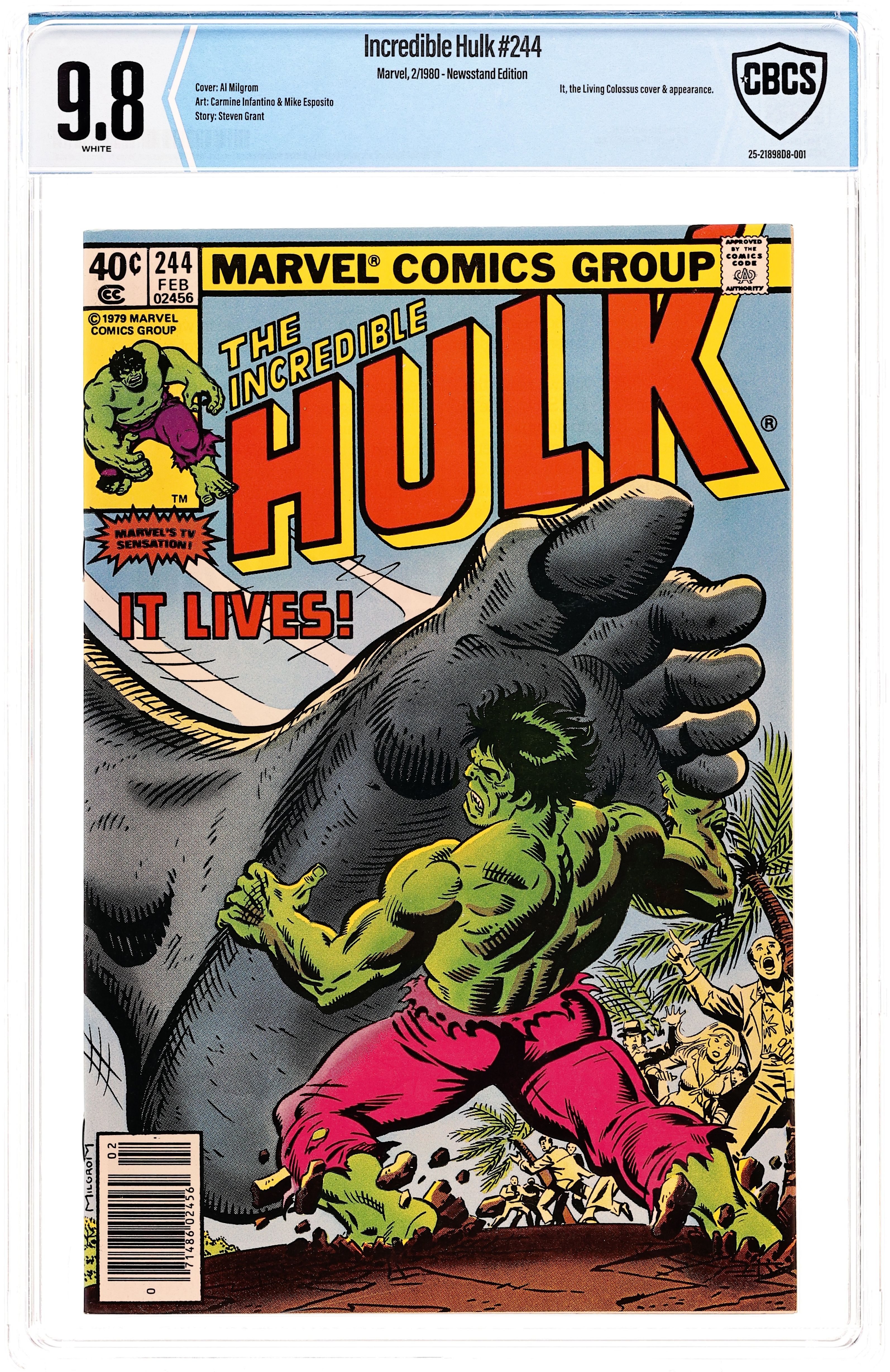 "It Lives!" Story by Steven Grant. Art by Carmine Infantino and Mike Esposito. The Hulk's travels have brought him to Hollywood where he must match his monstrous strength against the gigantic It, the Living Colossus (last seen in Monsters on the Prowl #25). 36 pages. Cover price $0.40.