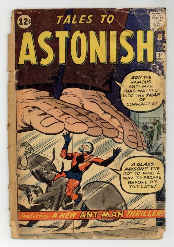 Cover by Jack Kirby and Dick Ayers. The Challenge of Comrade X!, script by Stan Lee and Larry Lieber, art by Jack Kirby and Dick Ayers; Ant-Man is hunted by a Soviet agent sent to capture him, but a beautiful stranger warns him of the spy's whereabouts. From Outer Space text story. The Hands of Time!, art by Paul Reinman; A fugitive steals a clock that turns back time; He becomes young again and tries to commit the perfect crime. The Search for Pan!, script by Stan Lee, art by Steve Ditko; A man arrives in a small village looking for Pan, whom all the villagers affirm does exist. 36 pgs., full color. $0.12. Cover price $0.12.