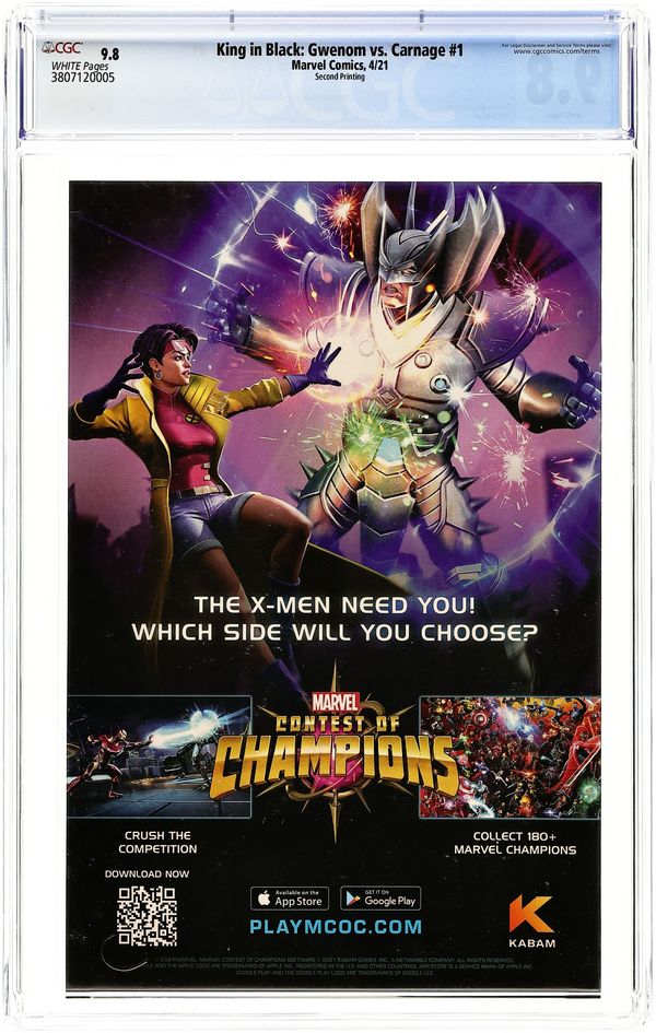 Tags: King in Black (part 2.09), Spider-ManKing in Black Gwenom vs. Carnage (2021 Marvel) 1D CGC 9.8 Lee Variant 2nd Printing