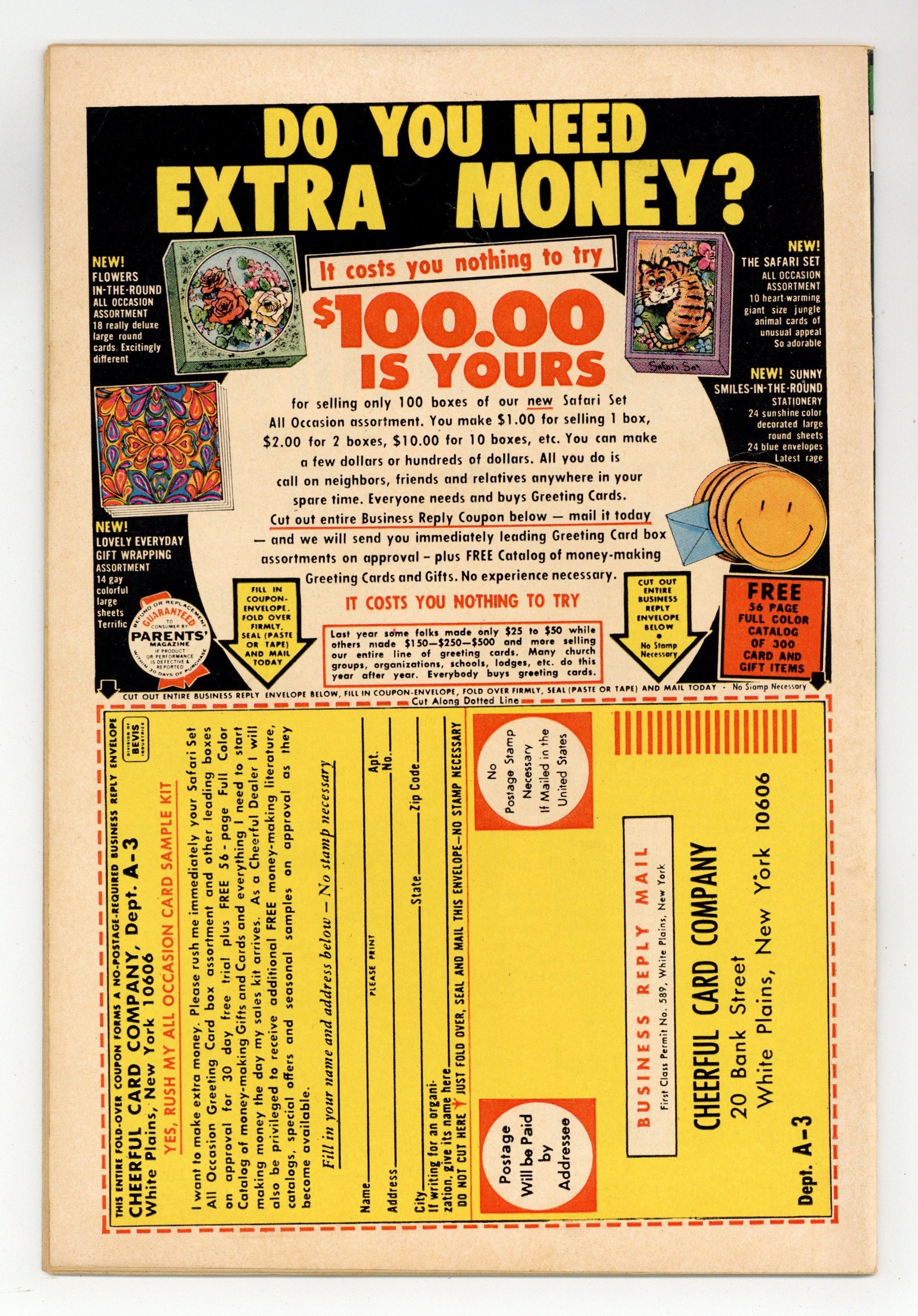 Starts Mar 9 Reprints Amazing Spider-Man (1963 1st Series) #40. Green Goblin origin in "Spidey Saves the Day!" Characters: F: Spider-Man; F: The Green Goblin; GA: Harry Osborn, Professor Stromm (f/b), Aunt May, Anna May Watson, J. Jonah Jameson, Betty Brant; Cameos: Ned Leeds, The Enforcers (Ox, Montana, Fancy Dan), Human Torch, Lucky Lobo, Crime Master (all flashback); Dr. Bromwell. Script by Stan Lee, pencils by John Romita, Sr., inks by Mike Esposito as "Mickey Demeo." Romita, Sr. cover pencils. Cover price $0.65.