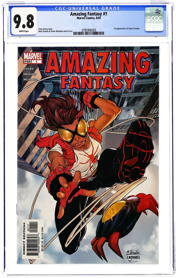 Written by FIONA AVERY Pencils & Cover by MARK BROOKS She's fierce, she's sassy... she sticks to walls! AMAZING FANTASY #1 is where it all begins: Meet an all-new, all-different heroine! Fiona Avery (AMAZING SPIDER-MAN) and Mark Brooks (MARVEL AGE SPIDER-MAN) launch a surprising series of teen- friendly adventures set in the current Marvel Universe! 32 PGS./MARVEL P Cover price $2.99.