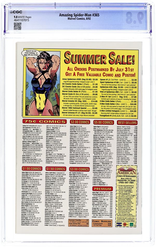 Tags: Marvel Legacy Numbering: Amazing Spider-Man (part 374), Spider-ManAmazing Spider-Man (1963 1st Series) 374D CGC 9.6