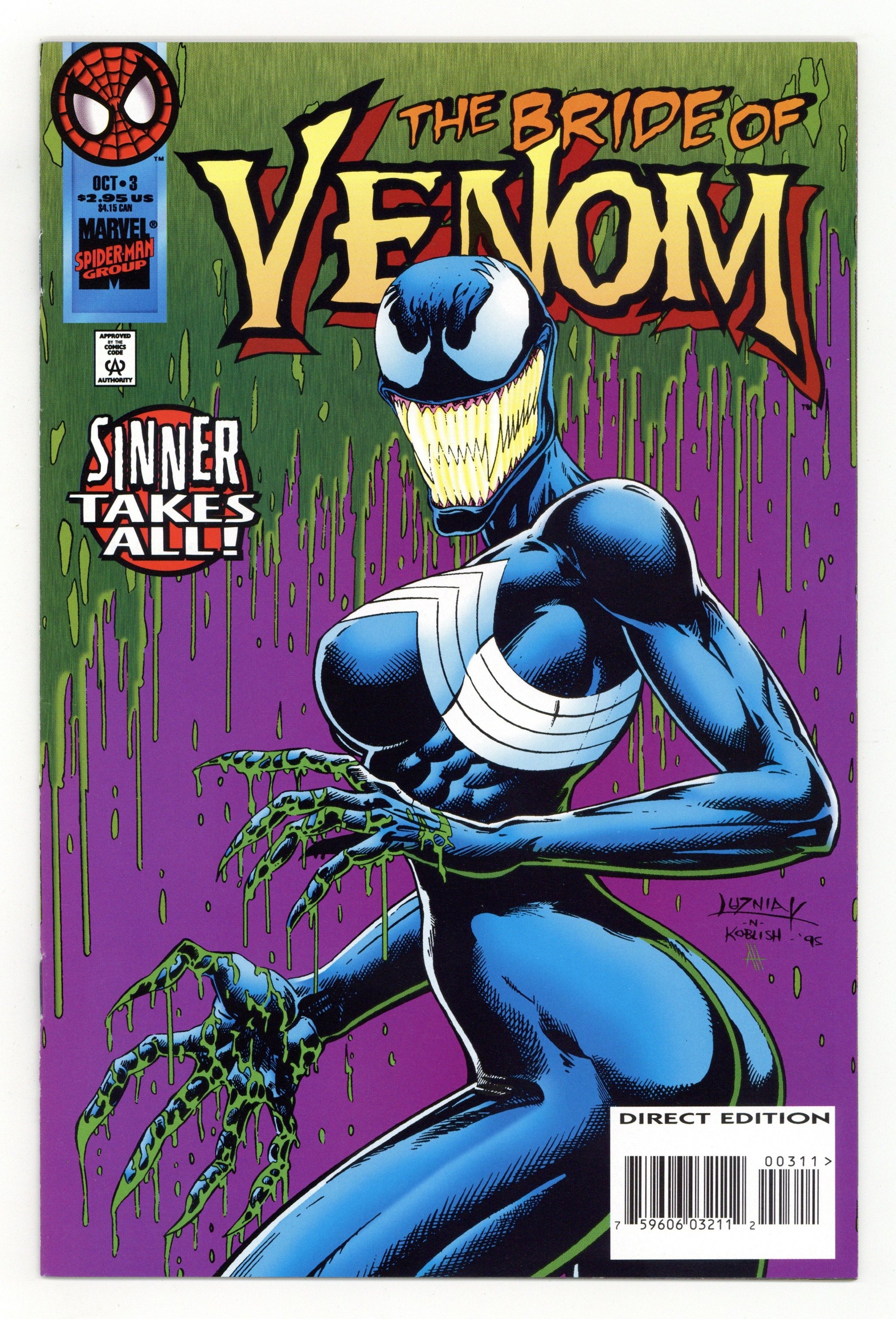 The badly scorched Venom gets burned again when he realizes he's hunting the wrong man! Will Sin-Eater feast on Eddie's loved ones? Written by Larry Hama. Art by Greg Luzniak, Jimmy Palmiotti and Ken Branch. And in the back-up, the Jury is in! Cover by Greg Luzniak and Scott Koblish. 48 pages. Cover price $2.95.