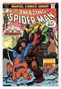 "Day of the Grizzly!" Part 1 of 2. Script by Gerry Conway. Pencils by Ross Andru. Inks by Frank Giacoia and Dave Hunt (backgrounds). Cover by Gil Kane (pencils) and John Romita Sr. (inks). Peter Parker finds a new place to live at 410 Chelsea Street! And when he stops by the Daily Bugle to tell his friends...the Grizzly attacks! Whoa, were did this 9-foot super-villain come from? There's no time for questions or answers as the web-slinger leaps into action! But the Grizzly is loaded for bear and then some! All the amazing one can do is save J. Jonah Jameson while the Grizzly escapes! However courtesy of the Jackal, the rematch is coming next issue! First appearance of the Grizzly. Cameo appearances by Betty Brant, Liz Allan, and Joe Robertson. (Notes: The letters page includes Marvel Value Stamp series A #42 Man-Wolf by Gil Kane and Mike Esposito. This story was reprinted in Marvel Tales 116.) 36 pages. 25c cover price. Cover price $0.25.