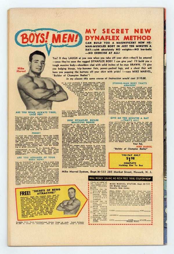 Cover art by Steve Ditko. The Final Chapter!, script by Steve Ditko (plot) and Stan Lee (script), art by Steve Ditko; Trapped under a pile of rubble in an underwater base that is filling with water, Spidey has to use all of his strength and determination to break himself free as Aunt May's life hangs in the balance; Spidey escapes and takes down Doc Ock's goons so he can deliver a serum that will remove the radiation from his Aunt's system. One of Spidey's classic moments is captured in the first 5 pages as he struggles to escape from underneath tons of steel! Reprinted in Marvel Tales # 26 and 172. 36 pgs. $0.12. Cover price $0.12.