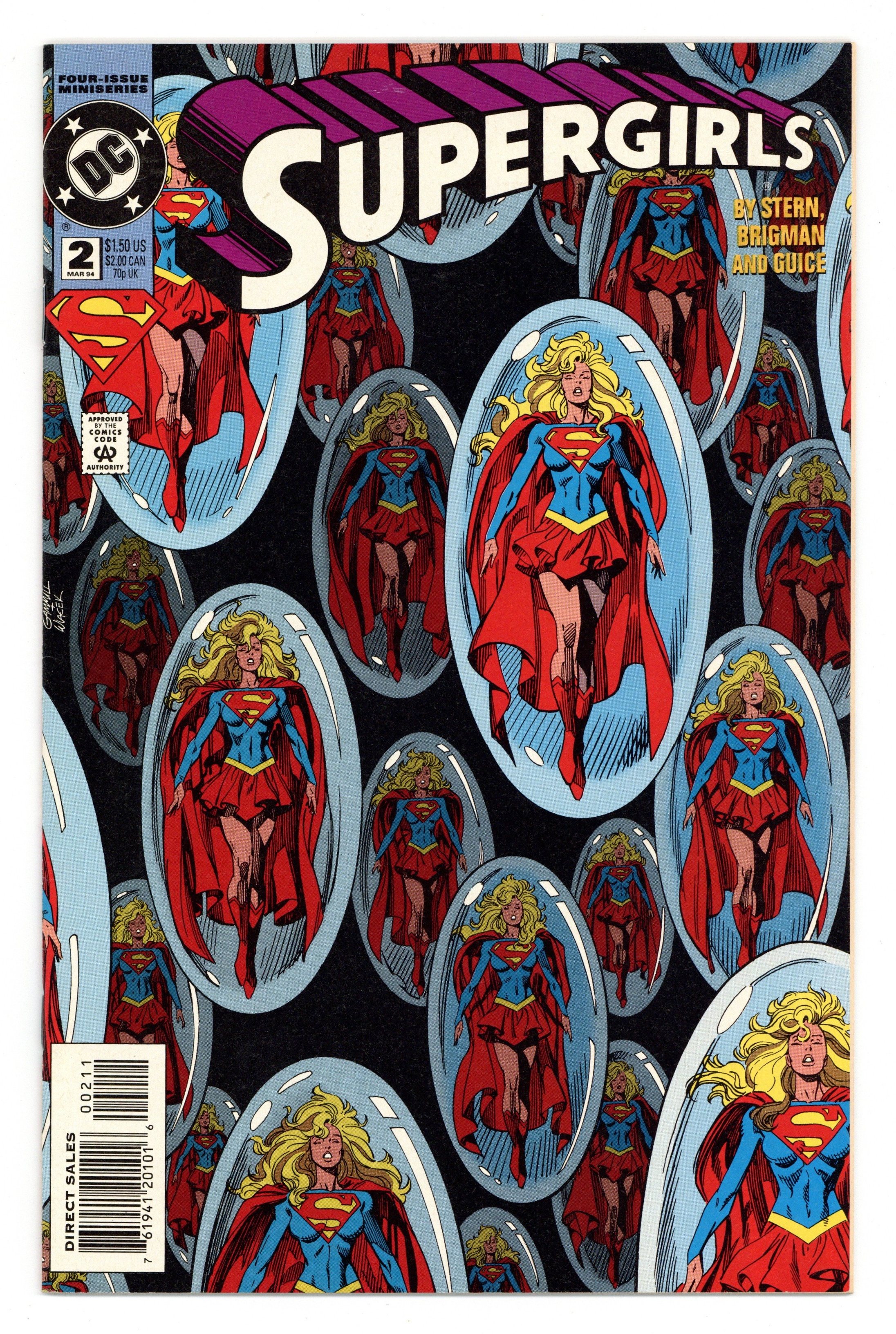 Tags: Superman$7.00Supergirl gets the shock of her life when she discovers that Lex Luthor II has been spending time with dozens of other women...and they're all clones of Supergirl. Written by Roger Stern, with art by June Brigman and Jackson Guice. Cover by Kerry Gammill and Bob Wiacek. Cover price $1.50.