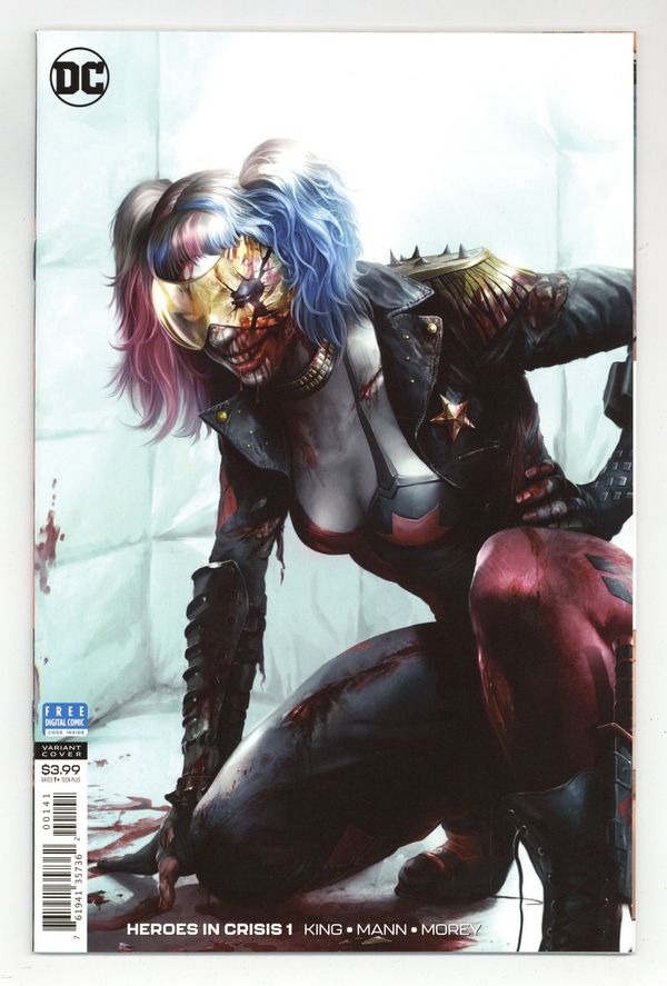 Limited 1 for 200 Retailer Incentive Variant Cover. Written by Tom King. Art by Clay Mann. Cover by Francesco Mattina. There's a new kind of crisis threatening the heroes of the DC Universe, ripped from real-world headlines by C.I.A.-operative-turned-comics-writer Tom King: How does a superhero handle PTSD? Welcome to Sanctuary, an ultra-secret hospital for superheroes who've been traumatized by crime-fighting and cosmic combat. But something goes inexplicably wrong when many patients wind up dead, with two well-known operators as the prime suspects: Harley Quinn and Booster Gold! It's up to the DC Trinity of Superman, Wonder Woman and Batman to investigate-but can they get the job done in the face of overwhelming opposition? 32 pages, full color. Rated T+ Cover price $3.99.