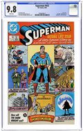 Tags: Whatever Happened to the Man of Tomorrow? (part 1), Superman$12.00Direct Edition. "Whatever Happened to the Man of Tomorrow?" Part 1, continues in Action Comics #583. Art by Curt Swan. Inks by George Pérez. These two issues are the final pre-Crisis Superman issues. Written by Alan Moore. 36 Pages, Full Color. Cover price $0.75.