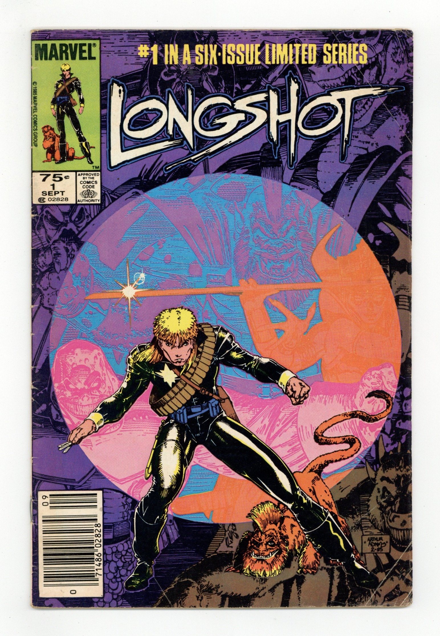 Tags: X-Men$24.00Newsstand Edition. 1st Art Adams pro work. Arriving on Earth unsure of his own identity, Longshot tries to rescue a kidnapped baby in "A Man Without a Past." Script by Ann Nocenti. Pencils by Arthur Adams (his first pro work). Inks by Whilce Portacio & Anderson. Cover by Adams. 1st appearance of Longshot and Spiral. Cover price $0.75.