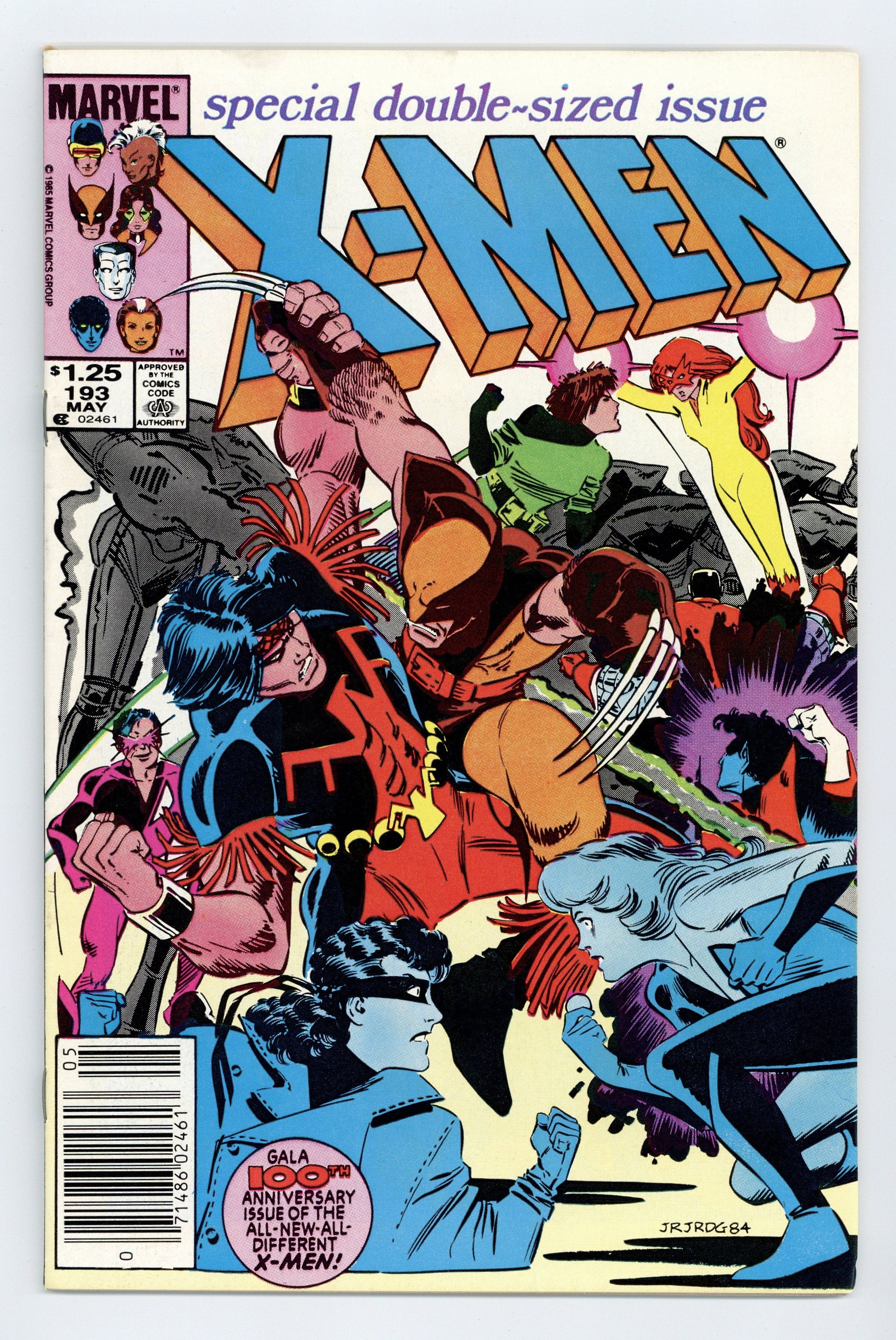 Newsstand Edition. Double Sized Issue - "Warhunt 2!" Guest-starring the New Mutants and Firestar. Story by Chris Claremont. Art by John Romita, Jr. and Dan Green. The warrior mutant Thunderbird comes seeking revenge on the X-Men for the death of his brother, the original Thunderbird (see Uncanny X-Men #95 for Thunderbird's death). His fellow Hellions (the Hellfire Club's version of the New Mutants) Roulette, Empath, and a duped Firestar are coming along for the ride. But when Thunderbird finally comes face-to-face with the man he blames for his brother's death, Charles Xavier, is he ready f to hear the truth? Plus, what is the mysterious Nimrod up to. NOTE: 1st appearance of Firestar. This issue celebrates the first 100 issues of the New X-Men. 52 pgs. Cover price $1.25.