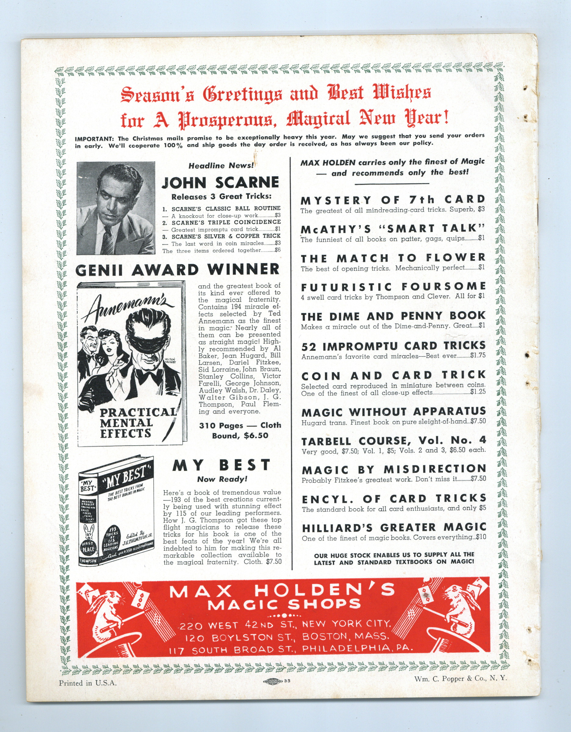 Vol. 1, No. 10 - November , 1945. Magazine for magicians. 8.5" x 11.75", 64 pages, B&W. Cover price $0.50.