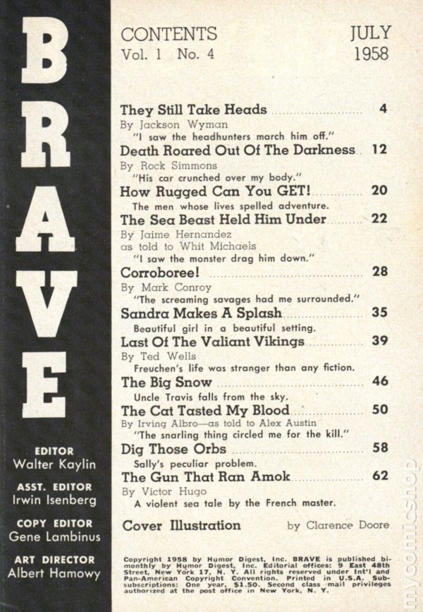 Brave (1956-1958 Humor Digest, Inc.) Vol. 1 #4Published Jul 1958 by Humor Digest Inc..
