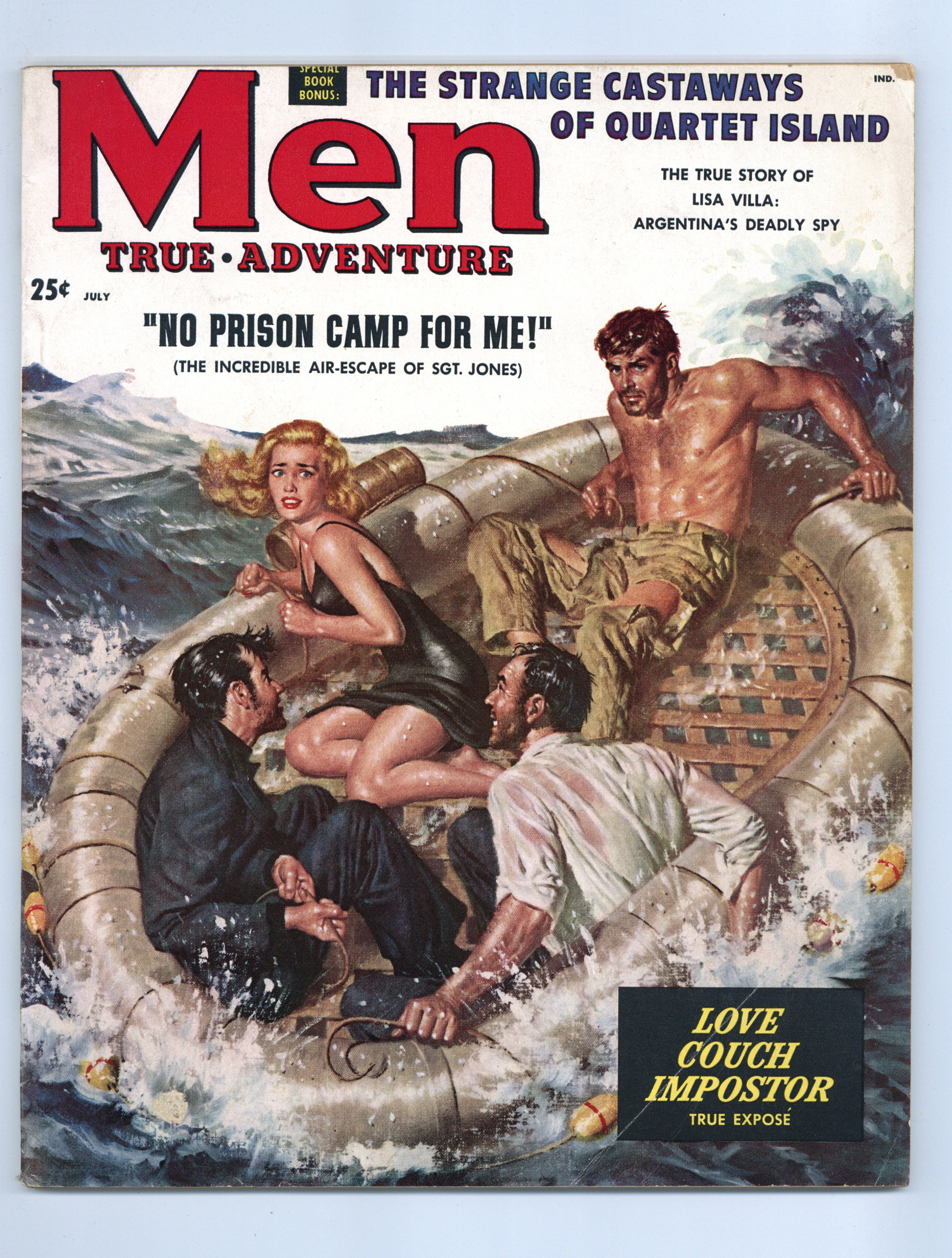 Published Jul 1958 by Zenith Publishing.$87.00Volume 7, Issue 7 - July, 1958. Men's magazine featuring articles on hunting, fitness, politics, true crime, and buxom beauties. Illustrations by Samson Pollen, Rafael DeSoto, Charles Copeland, and Stan Borack.8 1/2-in. x 11-in. 84 pages B&W. Cover price $0.25.