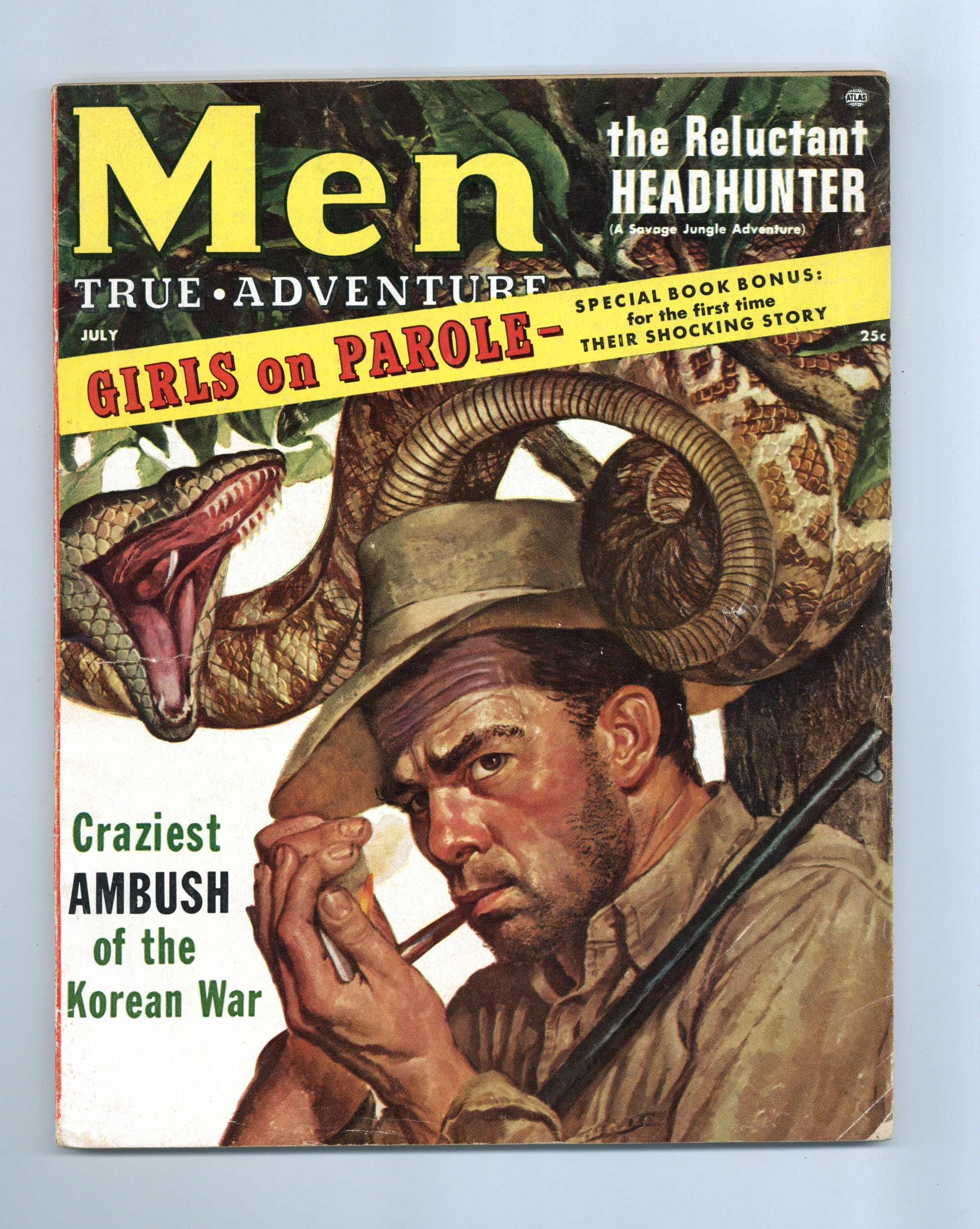 Volume 5, Issue 7 - July, 1956. Cover by Rafael DeSoto. Mort Kuntsler illustrated Casablanca's Impatient Women. Robert Maguire illustrates $5,000 Worth of Beer. 8 1/2-in. x 11-in., 82 pages, B&W and one added spot color for illustrations. Cover price $0.25.