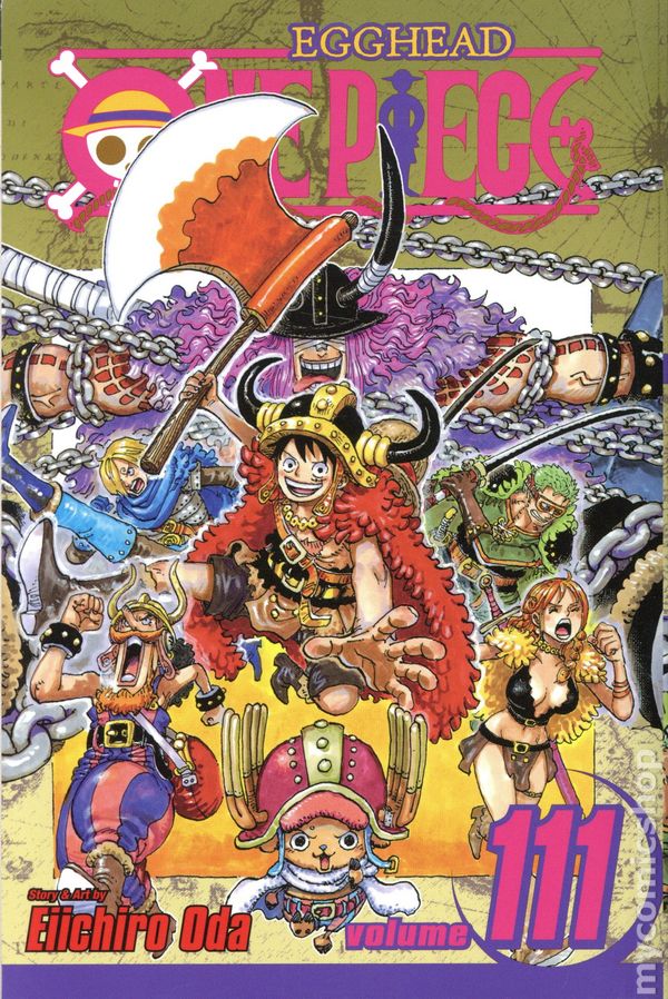 Volume 111 - 1st printing. "Egghead: Part 6!" Story and art by Eiichiro Oda. Translated by Stephen Paul. Pirates rejoice as Vegapunks message sends shock waves around the world. Who will be the first to claim the One Piece? The Straw Hats, on the other hand, must evade the Five Elders furious onslaught and escape the island of the future if they want to survive! Softcover, 5-in. x 7-in., 224 pages, B&W. Rating: T Cover price $11.99.