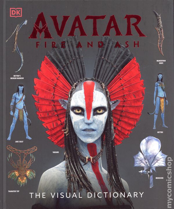 1st printing. By Reymundo Perez. A stunning exploration of the characters, equipment, and fabulous settings of the latest movie in the blockbuster Avatar franchise. A stunning exploration of the characters, clans, technology and new and exciting locations from the latest movie in the blockbuster Avatar franchise: Avatar: Fire and Ash. The alien, dangerous and beautiful world of Pandora returns to cinema screens in December 2025, and that world is fully reflected and celebrated in this beautifully presented Visual Dictionary. Featuring a wealth of new characters, flora and fauna, revelatory information about their lifestyles, possessions, and environment, this is an absolute must-have purchase for fans new and old. Hardcover, 9 1/2-in. x 12-in., 128 pages, full color. Cover price $30.00.