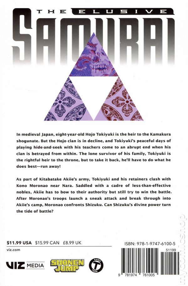 Volume 18 - 1st printing. Story and art by Yusei Matsui. Translated and Adapted by John Werry. In war-torn medieval Japan, a young samurai lord struggles to retake his throne, but not by fighting. Hojo Tokiyuki will reclaim his birthright by running away! In medieval Japan, eight-year-old Hojo Tokiyuki is the heir to the Kamakura shogunate. But the Hojo clan is in decline, and Tokiyukis peaceful days of playing hide-and-seek with his teachers come to an abrupt end when his clan is betrayed from within. The lone survivor of his family, Tokiyuki is the rightful heir to the throne, but to take it back, hell have to do what he does best—run away! As part of Kitabatake Akiies army, Tokiyuki and his retainers clash with Kono Moronao near Nara. Saddled with a cadre of less-than-effective nobles, Akiie has to bow to their authority but still try to win the battle. After Moronaos troops launch a sneak attack and break through into Akiies camp, Moronao confronts Shizuku. Can Shizukus divine power turn the tide of battle? Softcover, 5-in. x 7-in., 200 pages, B&W. Cover price $11.99.