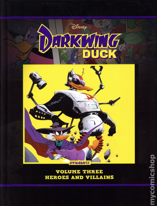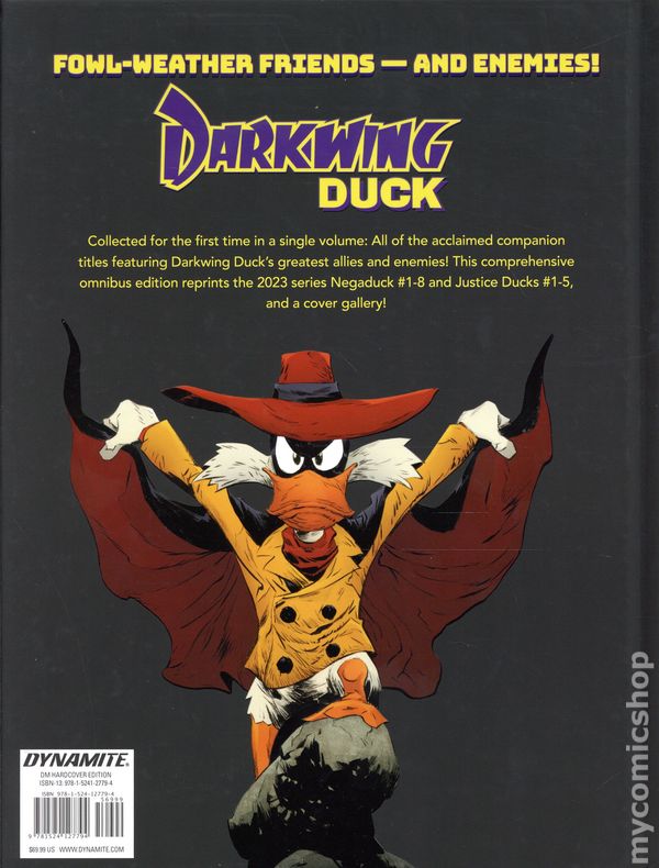Volume 3 - 1st printing. "Heroes and Villains!" Written by Jeff Parker and Roger Langridge. Art by Ciro Cangialosi, Stefano Porcu, and Carlo Lauro. Cover by Jae Lee. CELEBRATING A NEW ERA OF GETTING DANGEROUS! Nearly three decades after the debut of the original Darkwing Duck animated show, Disney and Dynamite Entertainment returned to the streets of St. Canard with all-new comic book series showcasing the Terror That Flaps in the Night — and that triumphant title quickly spawned two spectacular spinoff series that continued its success! Now, for the first time ever, all eight issues of JEFF PARKER and CIRO CANGIALOSIs Negaduck and all five issues of ROGER LANGRIDGE and CARLO LAUROs Justice Ducks are collected here in a single definitive omnibus edition — a treasure that no true web-footed fan can do without! Hardcover, 320 pages, full color. All Ages Cover price $69.99.