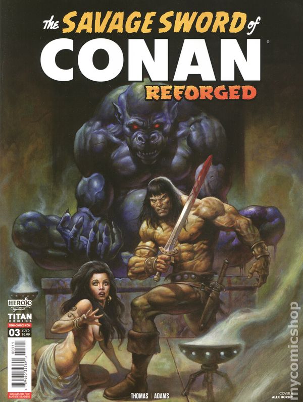 (W) Roy Thomas (A) Neal Adams, Tony Dezuniga (CA) Alex Horley In the desert city of Zamboula, Conan is attacked by a group of cannibals who feast on weary travelers. Together with a mysterious dancer named Zabibi, he learns the citys rulers turn a blind eye to the nightly hunts so long as those who live there aren't on the menu. But when Conan agrees to help Zabibi kill a depraved priest who cursed her lover, he'll find himself caught in a web of illusion and betrayal within the temple walls of the ape-god Hanuman! Reprinting the adaptation of the original Robert E. Howard story from Savage Sword of Conan #14, presented her for the first time in stunning color. 48 pages, full color, rated mature. Cover price $19.99.