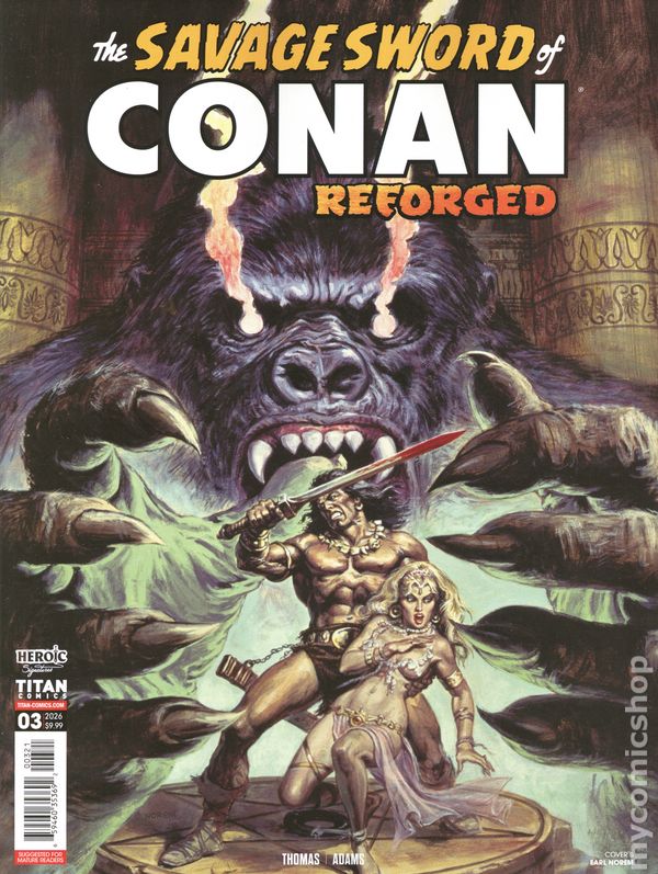 (W) Roy Thomas (A) Neal Adams, Tony Dezuniga (CA) Earl Norem In the desert city of Zamboula, Conan is attacked by a group of cannibals who feast on weary travelers. Together with a mysterious dancer named Zabibi, he learns the citys rulers turn a blind eye to the nightly hunts so long as those who live there aren't on the menu. But when Conan agrees to help Zabibi kill a depraved priest who cursed her lover, he'll find himself caught in a web of illusion and betrayal within the temple walls of the ape-god Hanuman! Reprinting the adaptation of the original Robert E. Howard story from Savage Sword of Conan #14, presented her for the first time in stunning color. 48 pages, full color, rated mature. Cover price $9.99.