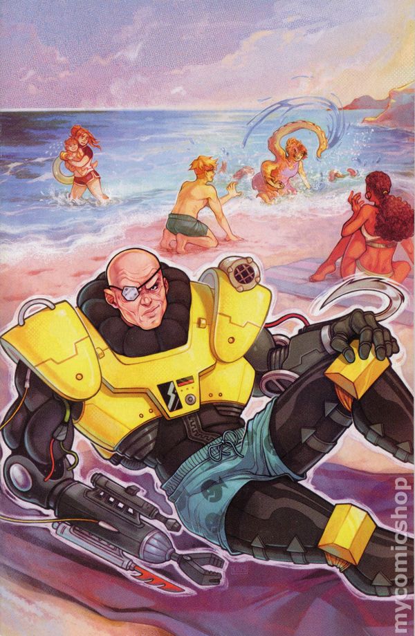 Limited 1 for 10 Retailer Incentive Variant Cover. (W) Stephanie Williams (A) Ariel Medel (CA) Elizabeth Beals Its all built up to this…the series finale!In each of the previous issues, Dr. Paradigm, A.K.A. Dr. Piranoid, A.K.A. the fishiest mad scientist in Fission City, has subjected the Street Sharks and the city to an array of schemes. All the while, hes been building…plotting…and now, the doctors most devastating creation will be unleashed upon the world! Its the Street Sharks versus Dr. Paradigms Perfect Predator! Standing eight feet tall and made from the combined DNA of an octopus, a crab, and a great white shark, this is the scariest foe the Sharks have ever fought! If they lose, we may have to retitle this series… 28 pages, not rated, full color Cover price $4.99.
