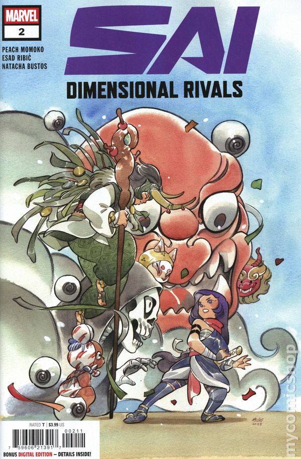 Limited 1 for 25 Retailer Incentive Variant Cover. (W) Peach Momoko; Natacha Bustos (A) Peach Momoko; Esad Ribic (CA) Esad Ribic INTO THE DEPTHS! PEACH MOMOKO continues the epic creator-driven masterpiece of SAI traversing new worlds in search of the magical stones! MARVEL superstars ESAD RIBIC & NATACHA BUSTOS bring their own unique flavors to the world of SAI! You won't want to miss the masterful art of comics envisioned by some of the industries most skilled creators! 28 pages, rated T, full color Cover price $3.99.