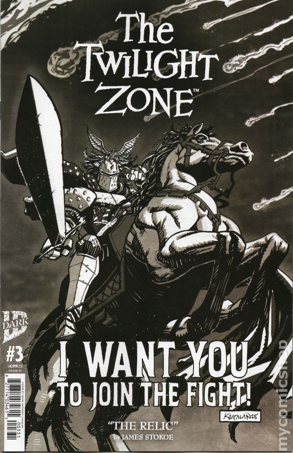 Limited 1 for 15 Retailer Incentive Variant Cover. (W) James Stokoe (A) James Stokoe (CA) Kevin Anthony Catalan This all-new Twilight Zone anthology series continues with standalone stories by some of the best creators in comics today! Each issue is a fresh tale in the vein of the iconic original television series that’s captivated audiences for over 60 years. And like the show, these stories will be revealed in terrifying black and white!THIS ISSUE: Somewhere, there is a war being fought. Two civilizations, each believing itself the summit of power, battle over a holy relic whose function and origin lie beyond their understanding. An army of dedicated knights who defend the item, a horde of zealous barbarians who covet it—neither side willing to cede an inch of ground to the other. But even to those fueled by faith, not all is as it seems…in the Twilight Zone!Dynamic writer/artist James Stokoe (Godzilla in Hell, Orphan and the Five Beasts) brings you the most action-packed Twilight Zone story yet! Cover price $4.99.