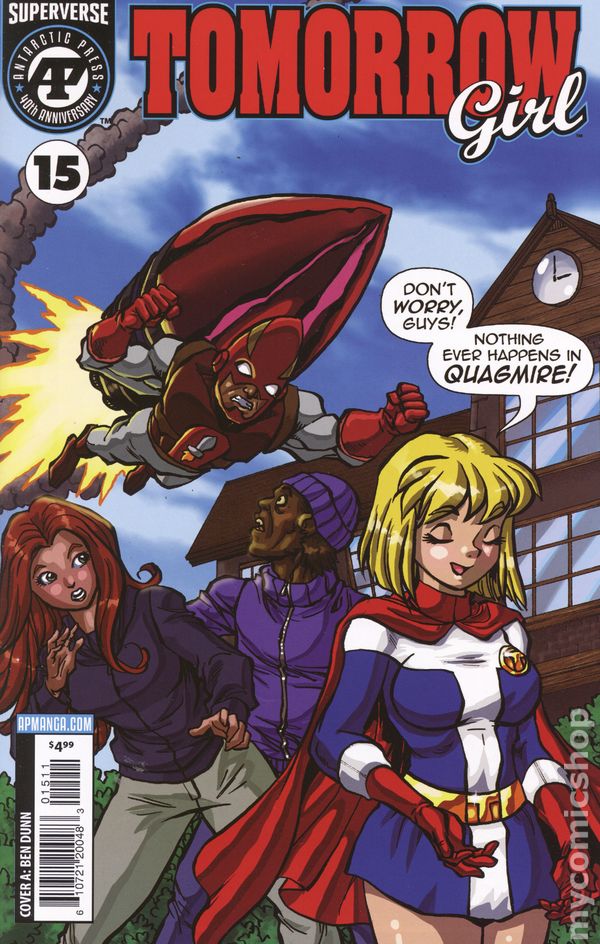 (W) Len Mihalovich (A) Phil Miller, Antonio Reda (CA) Ben Dunn SUPERVERSE TITLE! HEROES FROM ANOTHER DIMENSION VS. QUAGMIRE HIGH SCHOOL! AMERICAN MANGA SUPERHERO! 'Search for Tomorrow, Part 3': In the stunning finale of this dimension-hopping adventure, Section 12's own Miss Fire and Nite-Fall find themselves stranded in Tomorrow Girl's vibrant and unpredictable world. As they search for a way back, they experience a surprising detour: a day undercover as high school students at Quagmire High School. Between dodging danger and navigating lunch, they discover that fitting in can be just as challenging as fighting giant robots! 32 pages, not rated, full color Cover price $4.99.