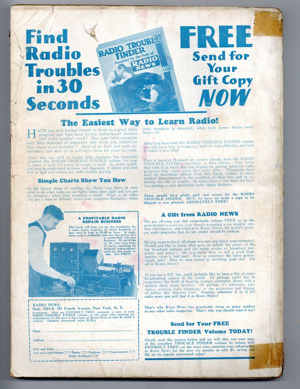 Published Apr 1931 by Experimenter Publications.$36.00- Back cover detached 30%. Front Cover Detached. Staple rust: Slight.