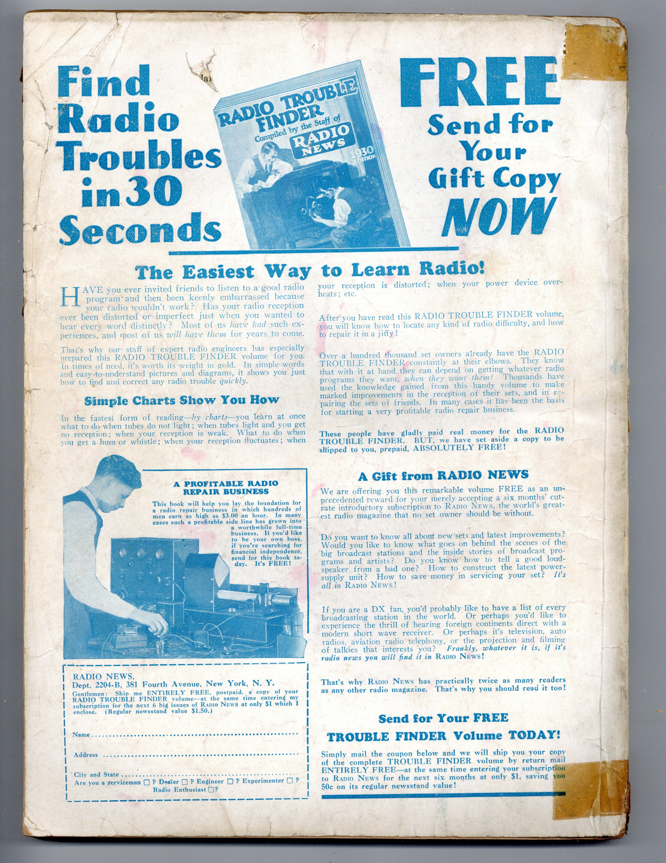 Published Apr 1931 by Experimenter Publications.$55.00- Front cover detached 10%. Back cover detached 20%. Water damage: Moderate. Staple rust: Moderate.