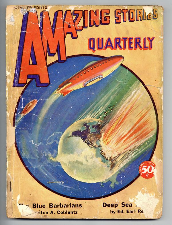 Vol. 4, No. 3 - Summer 1931. Stories by Stanton A. Coblentz, Ed Earl Repp, David H. Keller M.D., Roscoe B. Fleming, A.W. Bernal, and Eugene Stowell. Illustrations by Leo Morey and Wesso. Morey cover. 8.5-in. x 11-in.; black and white with color cover; 144 newsprint pages. Cover price $0.50.