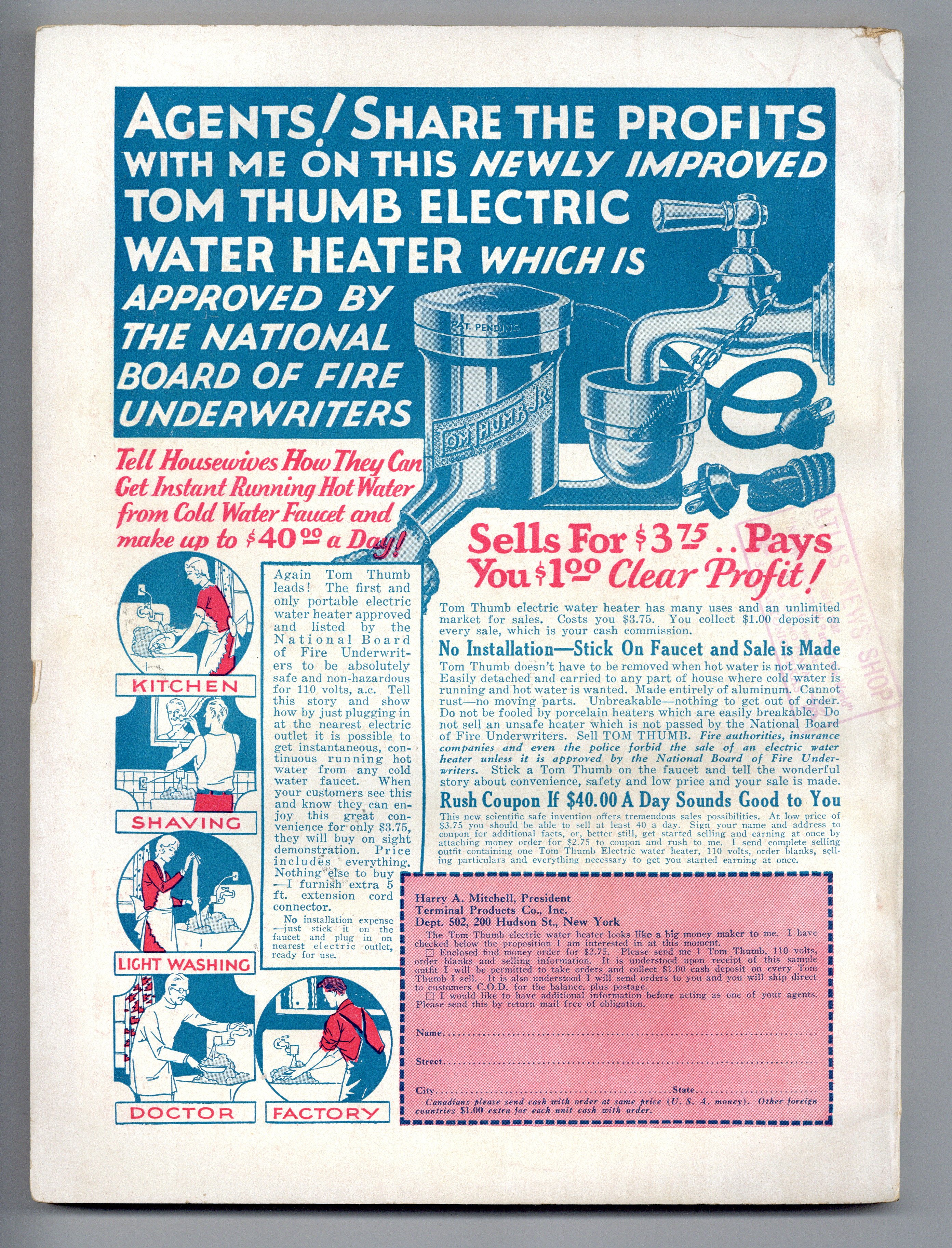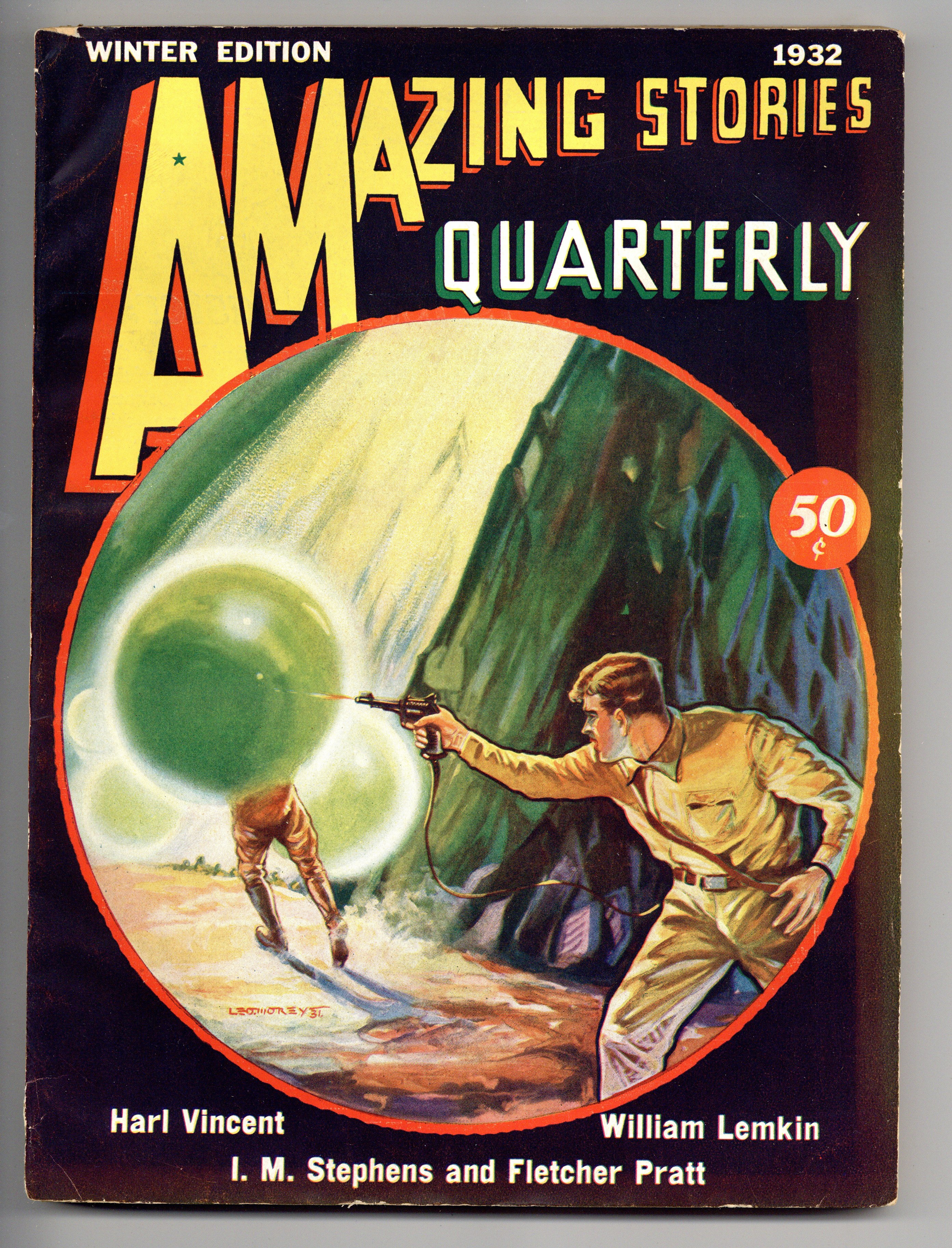 Winter 1932. Stories by Harl Vincent, William Lemkin, I.M. Stephens and Fletcher Pratt, Walter Kateley, Earle H. Morris, Carl Jacobi, and John Shamus O'Donnell. Illustrations by Leo Morey and Wesso. Morey cover. 8.5-in. x 11-in.; black and white with color cover; 144 newsprint pages. Cover price $0.50.