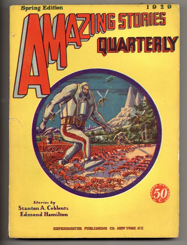Vol. 2, No. 2 - Spring 1929. Stories by Stanton A. Coblentz, Edmond Hamilton ("Locked Worlds"), Aladra Septama, and Quien Sabe. Illustrations. Edited by Hugo Gernsback. 8.5-in. x 11-in.; black and white with color cover; newsprint interiors. Cover price $0.50.
