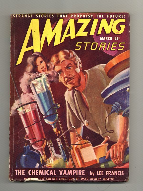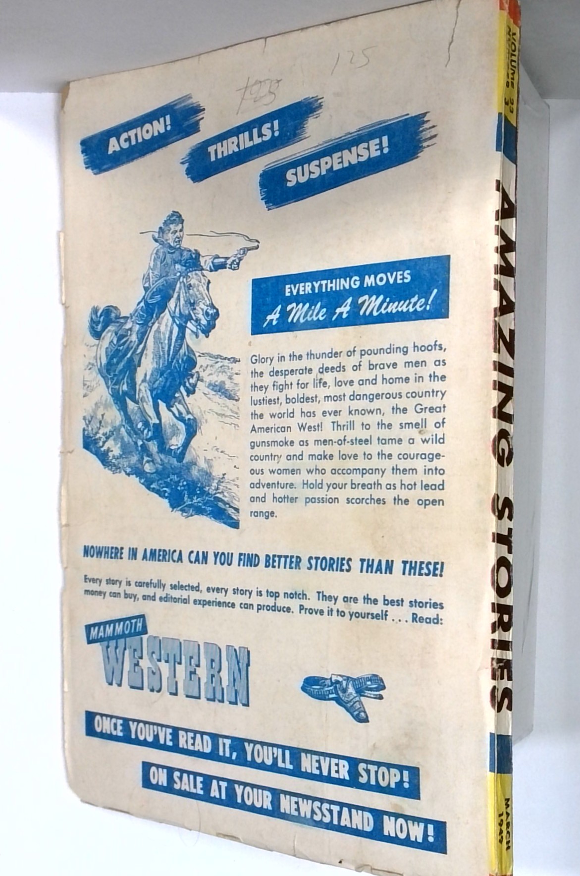 Volume 23, Issue 3 - March, 1949. Science fiction stories by Lee Francis, Chester S. Geier and Taylor Victor Shaver (brother of Richard S. Shaver), Guy Archette, Leroy Yerxa, and Charles Recour. Illustrations by J. Allen St. John, Edmond Swiatek, Julian S. Krupa, and Bill Terry. Cover by Swiatek. 7" x 10"; black and white; 154 newsprint pages. Cover price $0.25.