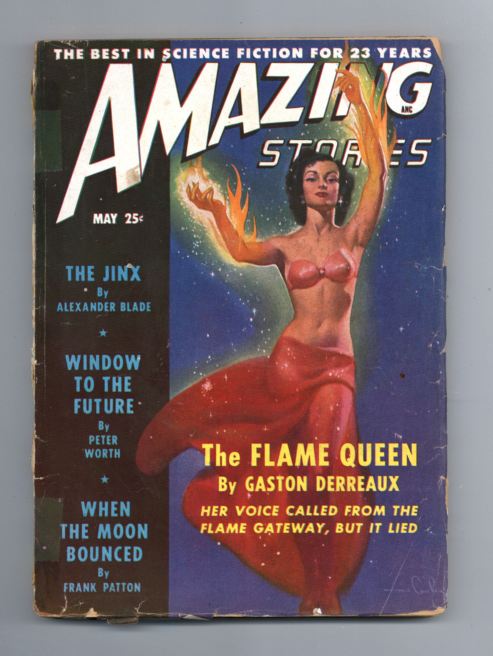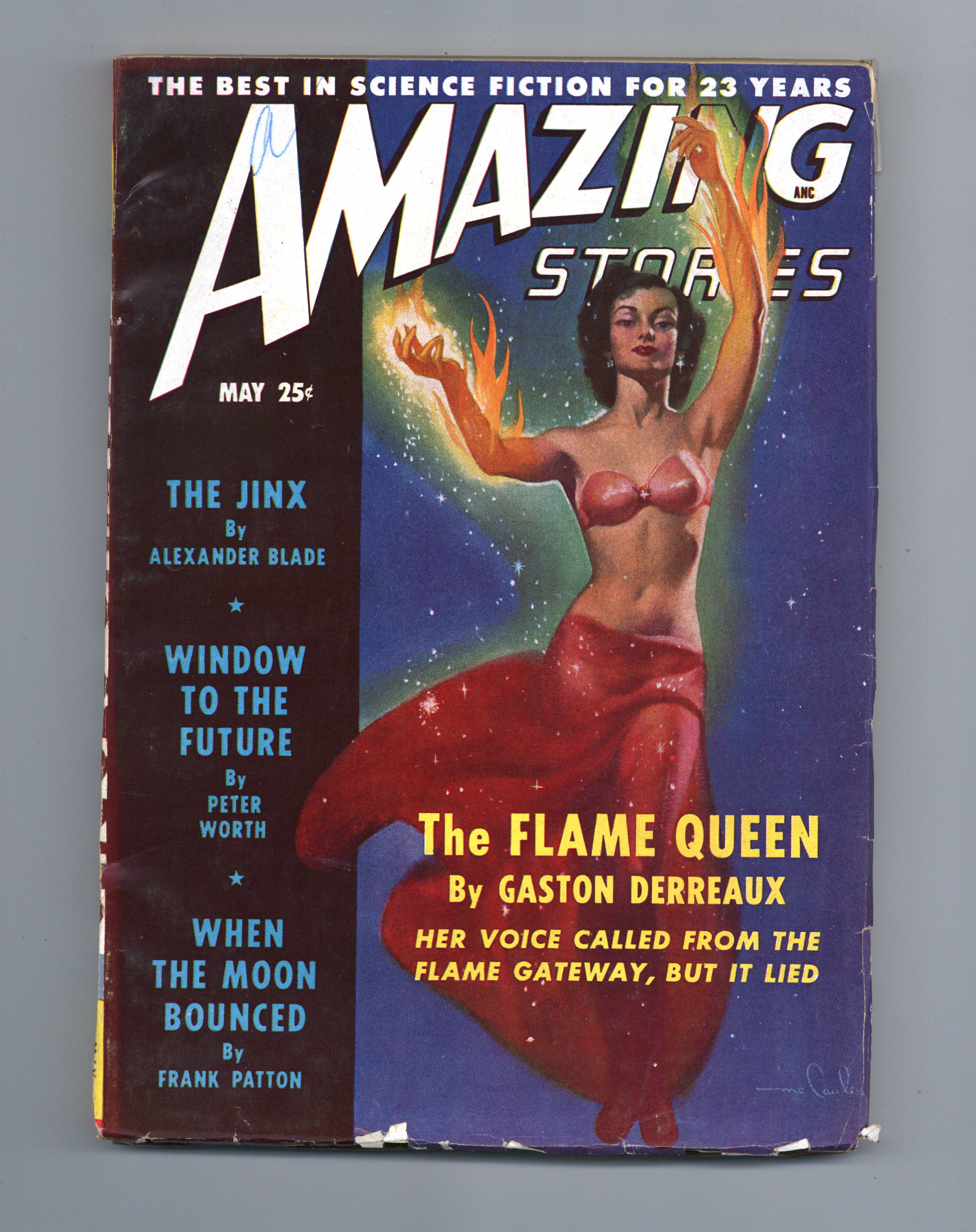 Volume 23, Issue 5 - May, 1949. Science fiction stories by Gaston Derreaux, Alexander Blade, Frank Patton, Chester Ruppert, and Peter Worth. Illustrations by H.W. McCauley, Rod Ruth, Julian S. Krupa, and Bill Terry. Cover by McCauley. 7-in. x 10-in.; black and white; 154 newsprint pages. Cover price $0.25.
