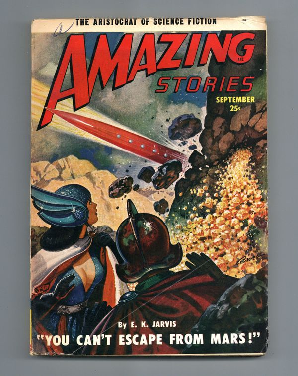 Sept 1950. Cover by Robert Gibson Jones. Science fiction stories by Robert Moore Williams, P.F. Costello, E.K. Jarvis "You Can't Escape From Mars!", Charles V. DeVet, Dallas Ross, John Wyndham, Gilbert Mead, and Gilbert Grant. Illustrations by Murphy Anderson, Harry Cronen, Rod Ruth, Julian S. Krupa, Leo Ramon Summers, and Edmond Swiatek. 7-in. x 10-in.; black and white; 176 newsprint pages. Cover price $0.25.