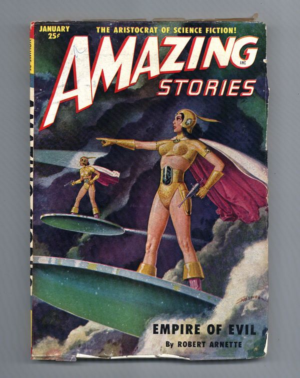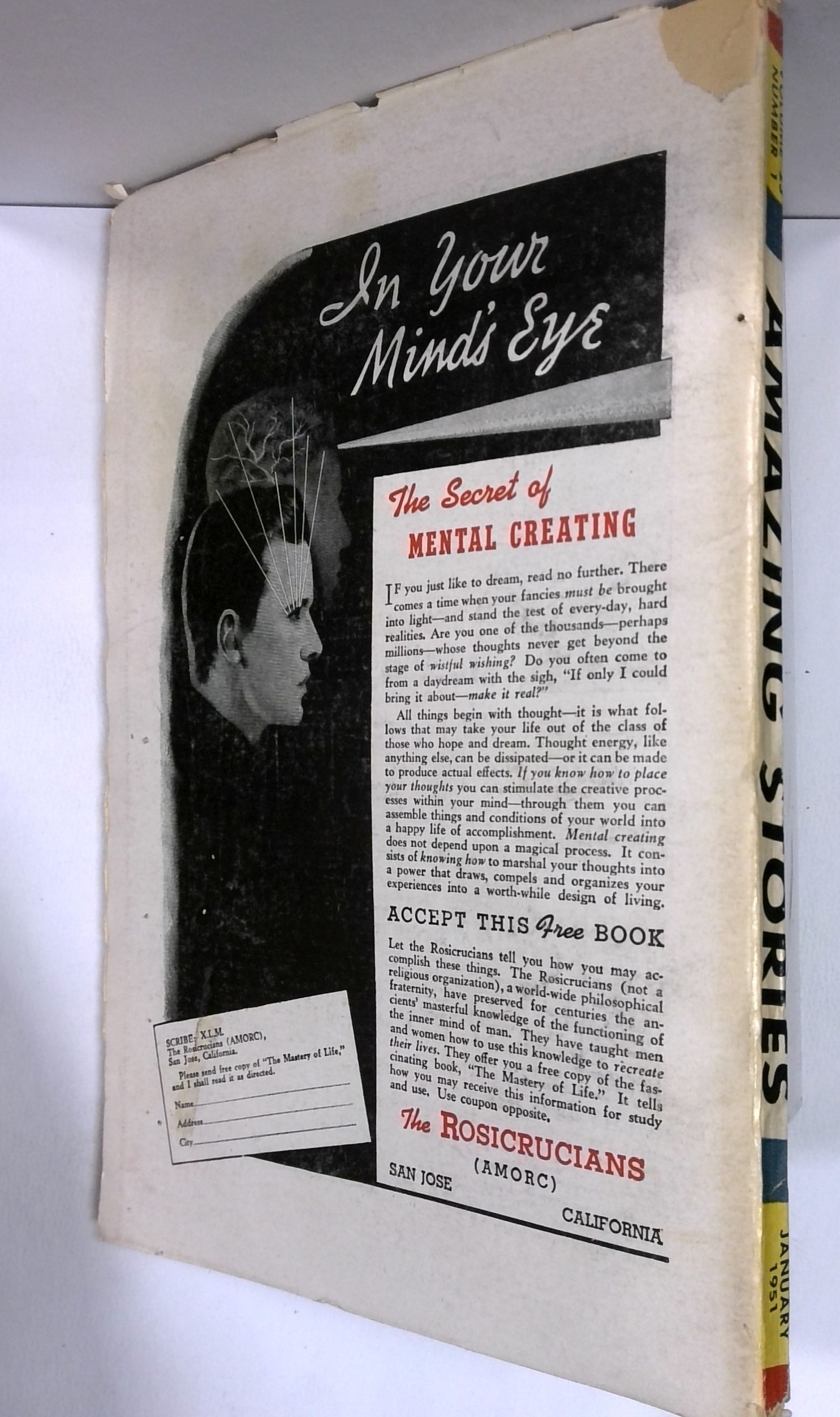 Volume 25, Issue 1 - January, 1951. Cover by Robert Gibson Jones. Charles Beaumont's 1st published story "The Devil, You Say?" and Walter M. Miller Jr's 1st published SF story "Secret of the Death Dome". Other science fiction stories by E.K. Jarvis, H. Beam Piper, Robert Arnette, Frances M. Deegan, and Mack Reynolds. Illustrations by Virgil Finlay, Robert Jones, Enoch Sharp, Henry Sharp, Julian Krupa, and Edmond Swiatek. 7-in. x 10-in.; black and white; 164 newsprint pages. Cover price $0.25.