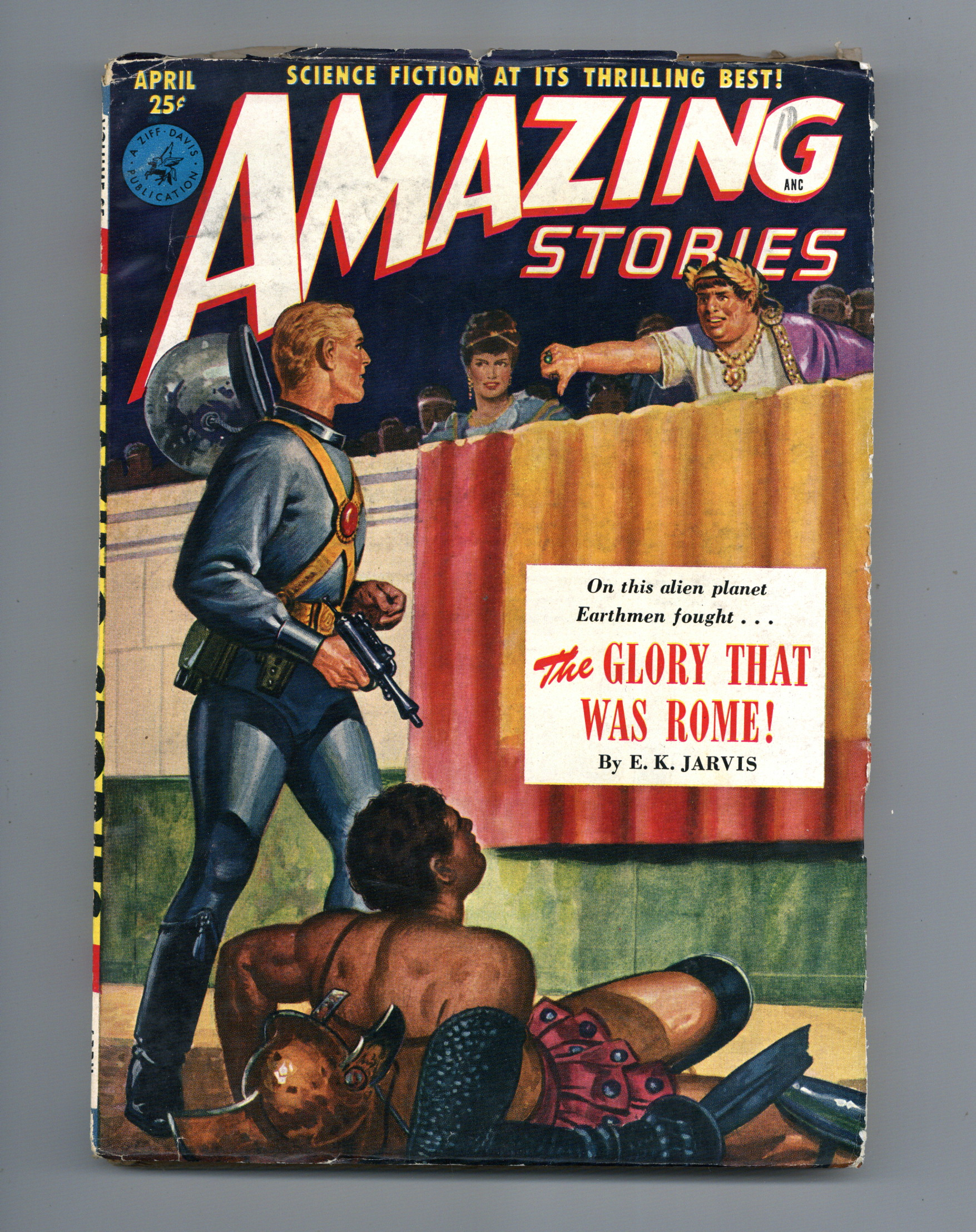 Volume 25, Issue 4 - April, 1951. Cover by Robert Gibson Jones. Science fiction stories by Isaac Asimov, Robert Moore Williams, E.K. Jarvis, Clee Garson, Kendall Foster Crossen, Charles Creighton, and H.B. Hickey. Illustrations by Ogden Whitney, Enoch Sharp, James Settles, Henry Sharp, and Edmond B. Swiatek. 7-in. x 10-in.; black and white; 166 newsprint pages. Cover price $0.25.